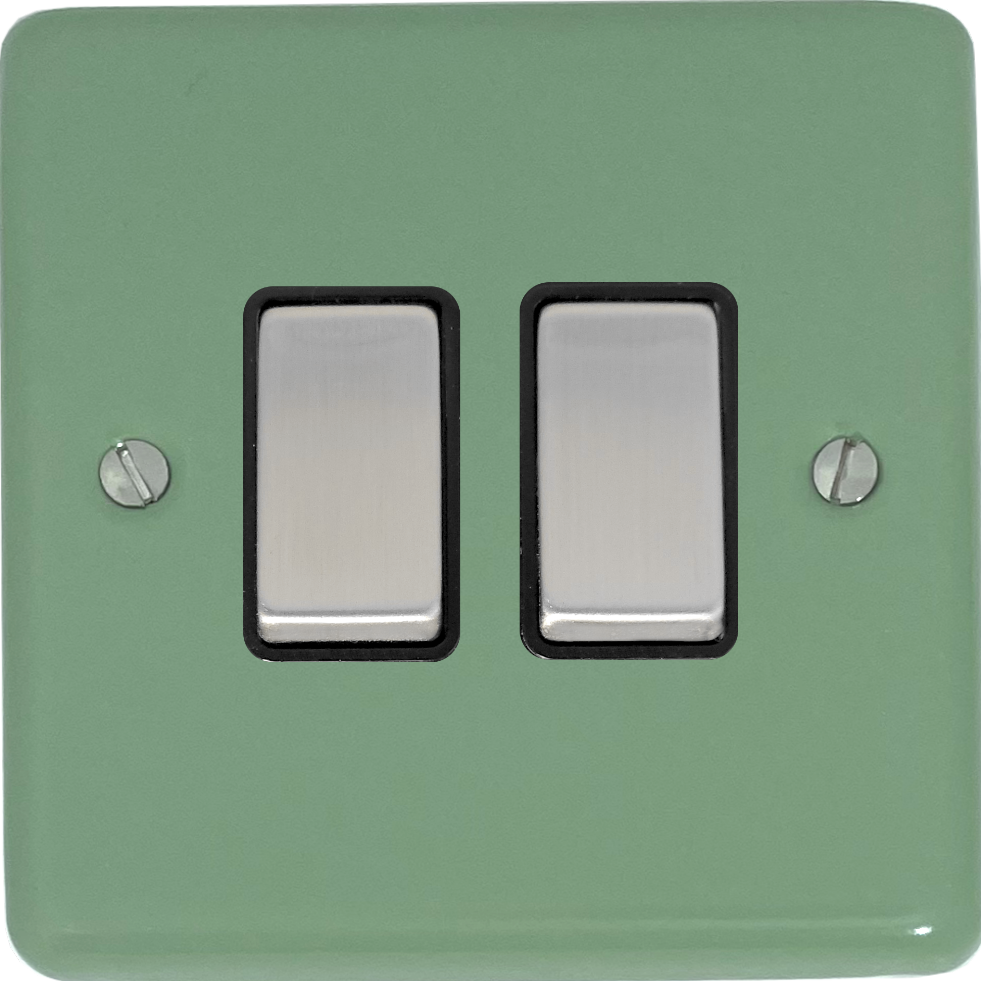 Contour Sage Green Light Switch (2 Gang/Black Insert/Steel Switches) - G+H CSG302-SC