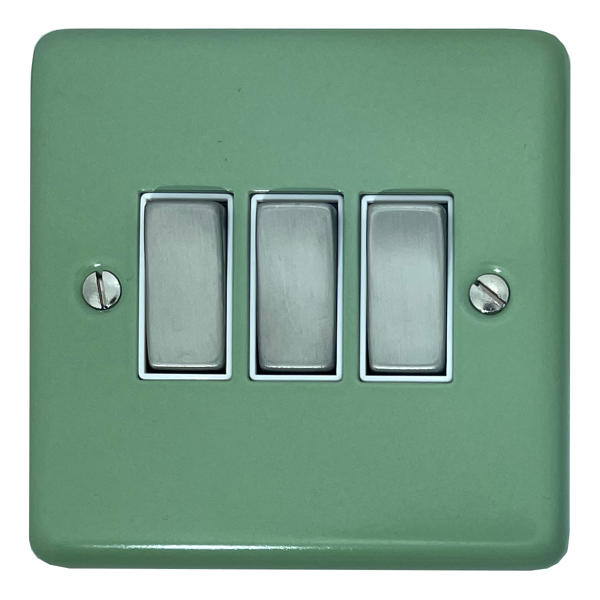 Contour Sage Green Light Switch (3 Gang/White Insert/Steel Switches) - G+H CSG203