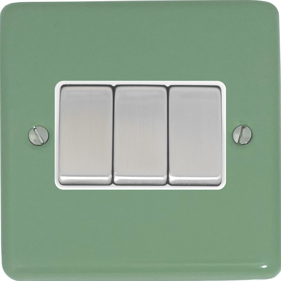 Contour Sage Green Light Switch (3 Gang/White Insert/Steel Switches) - G+H CSG203-SC