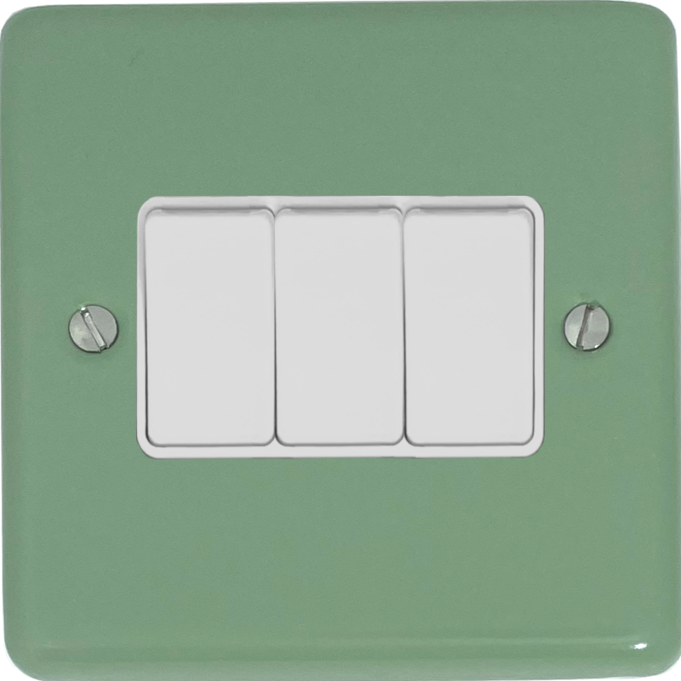 Contour Sage Green Light Switch (3 Gang/White Switches) - G+H CSG3W