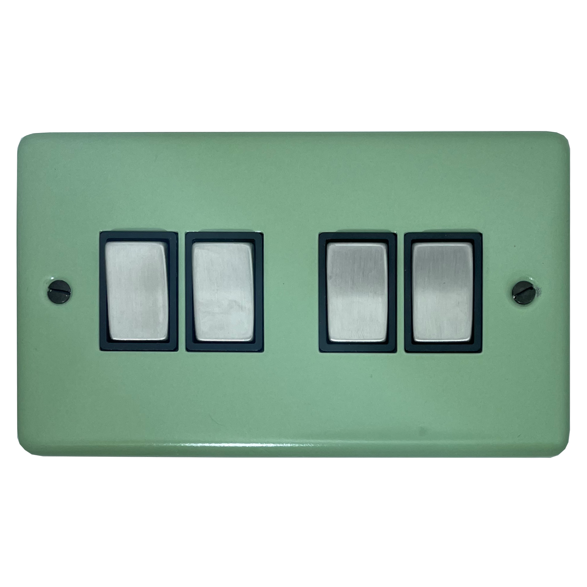 Contour Sage Green Light Switch (4 Gang/Black Insert/Steel Switches) - G+H CSG304