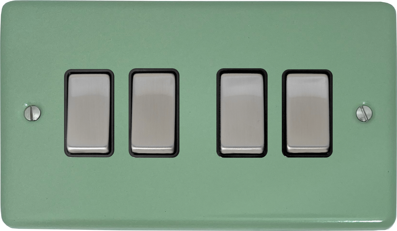 Contour Sage Green Light Switch (4 Gang/Black Insert/Steel Switches) - G+H CSG304-SC