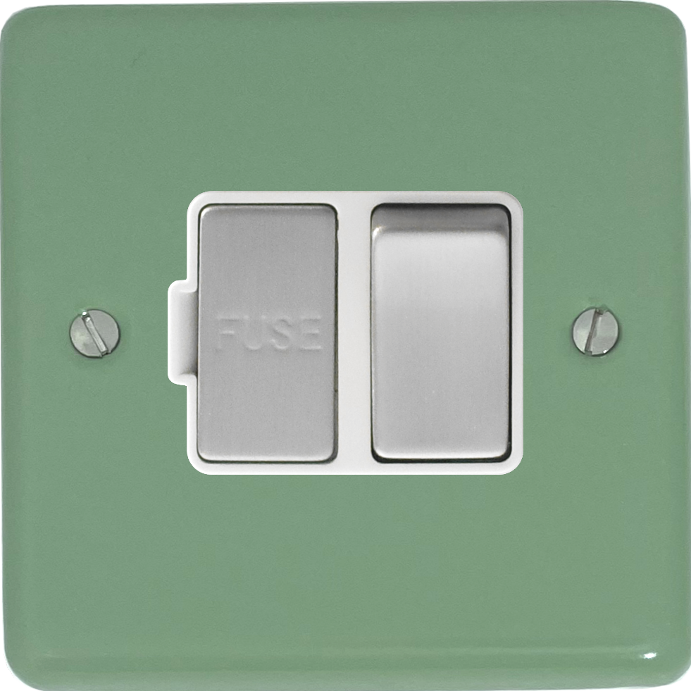 Contour Sage Green Switched Fused Spur (White Insert/Steel Switch) - G+H CSG257-SC