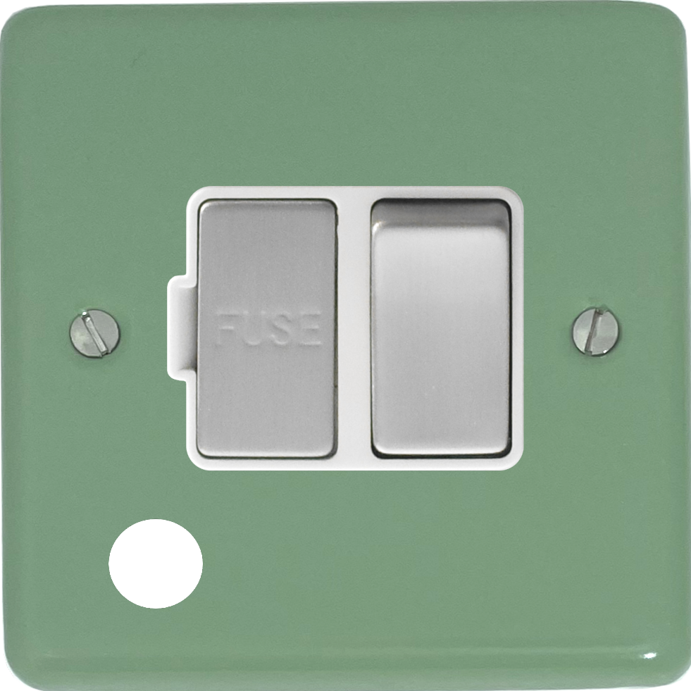 Contour Sage Green Switched Fused Spur with Flex Outlet (White Insert/Steel Switch) - G+H CSG256-SC