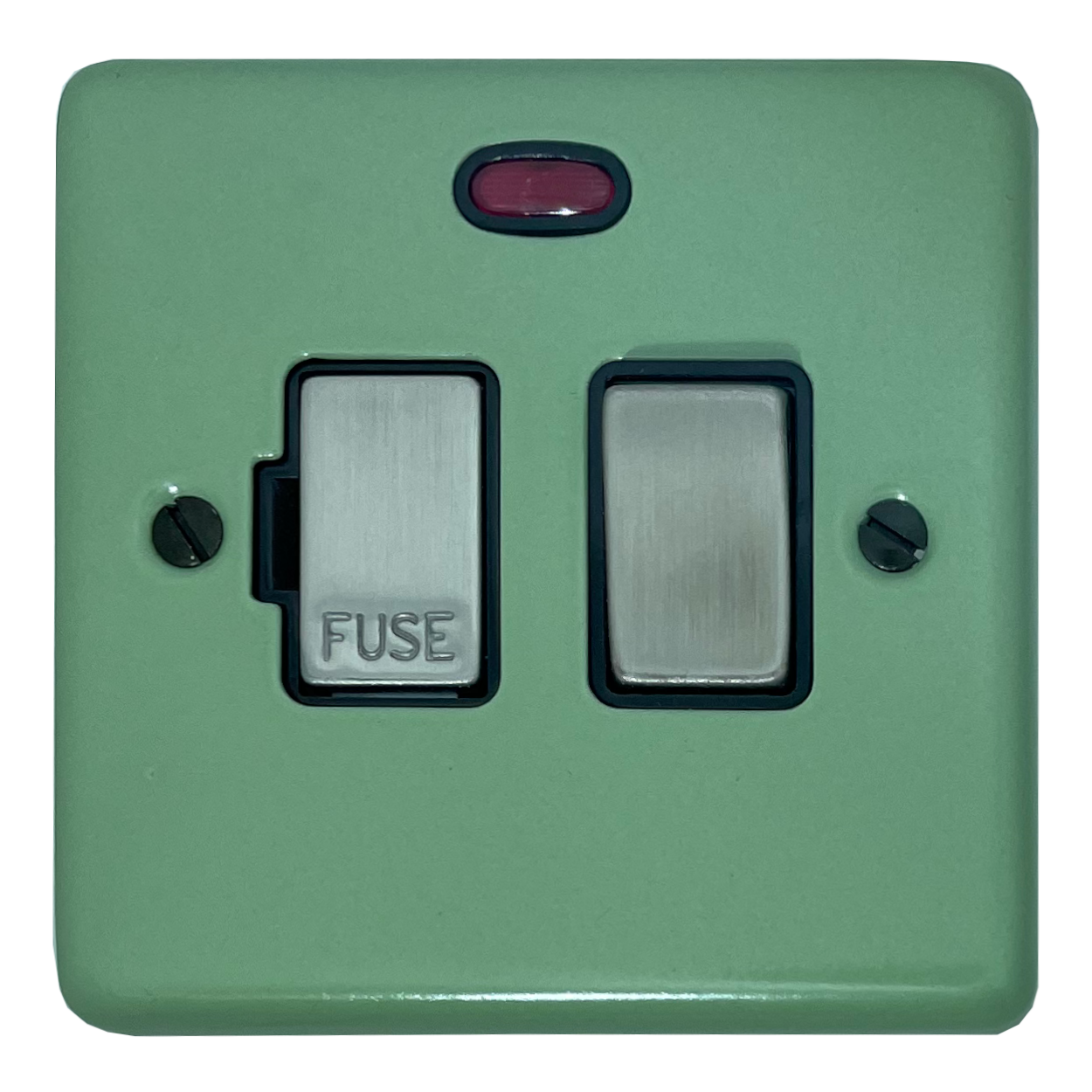 Contour Sage Green Switched Fused Spur with Neon (Black Insert/Steel Switch) - G+H CSG327