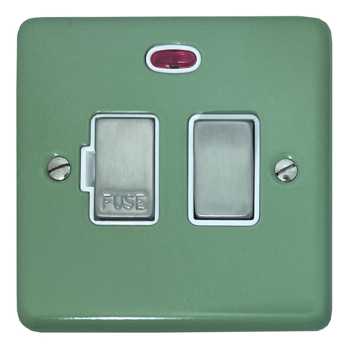 Contour Sage Green Switched Fused Spur with Neon (White Insert/Stainless Steel Switch) - G+H CSG227