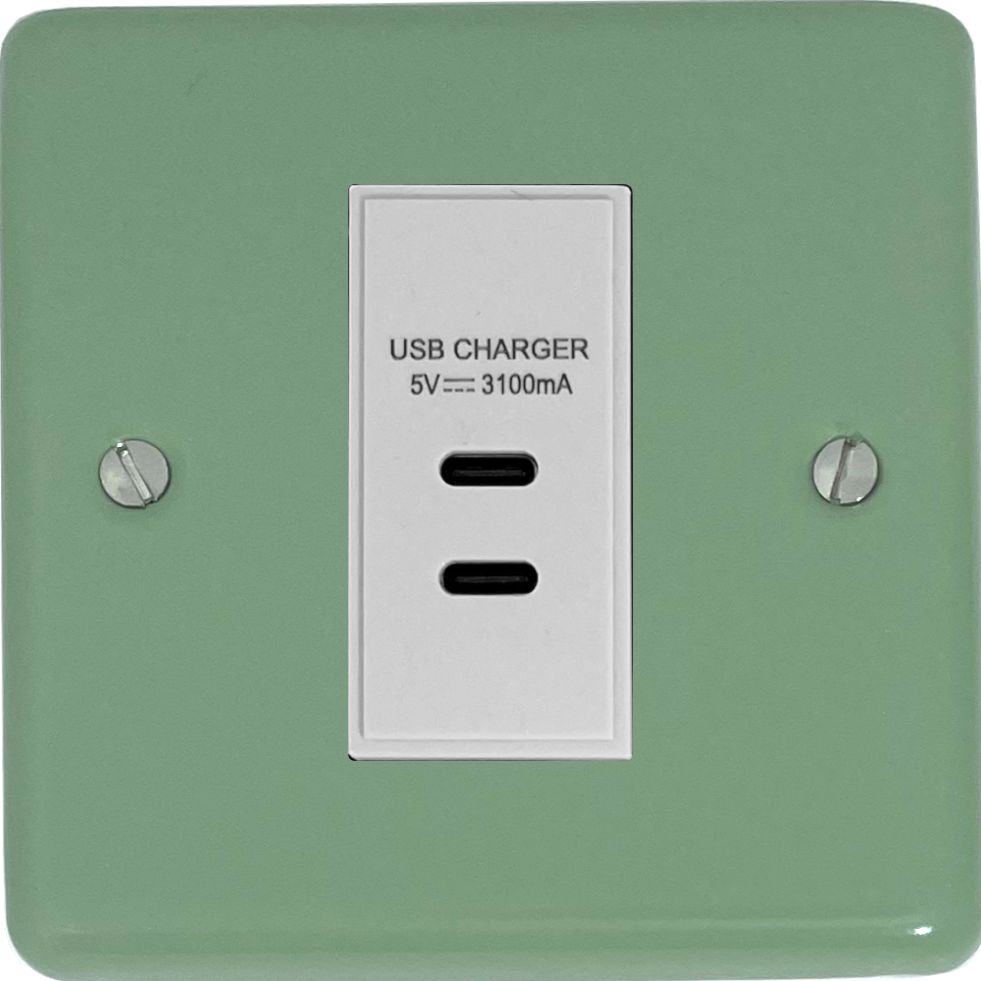 Contour Sage Green USB Charger (2x USB-C) (1 Gang/White Insert) - G+H CSG42W