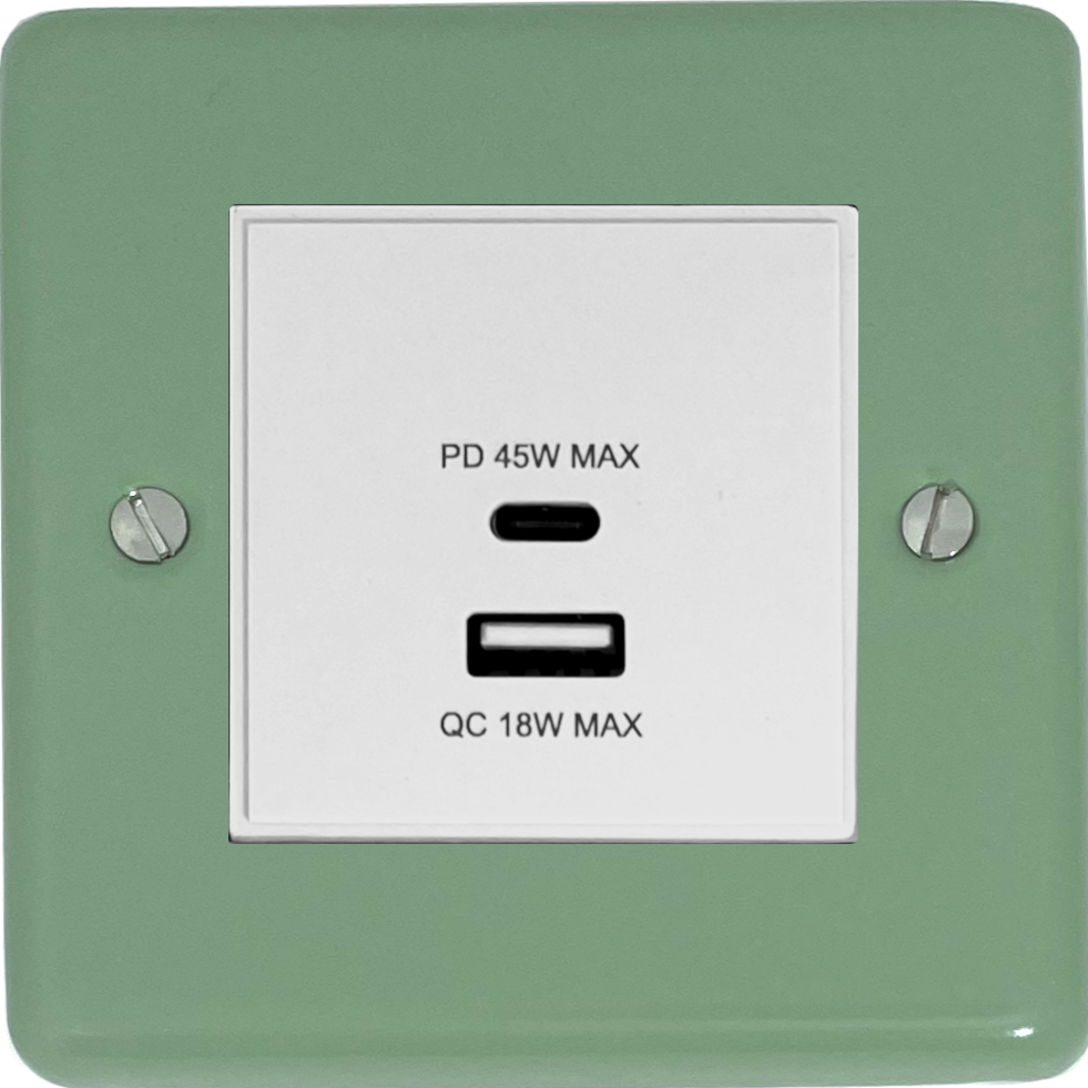 Contour Sage Green USB Charger (Dual USB A + C Quick Charge) (1 Gang/White Insert) - G+H CSG43W