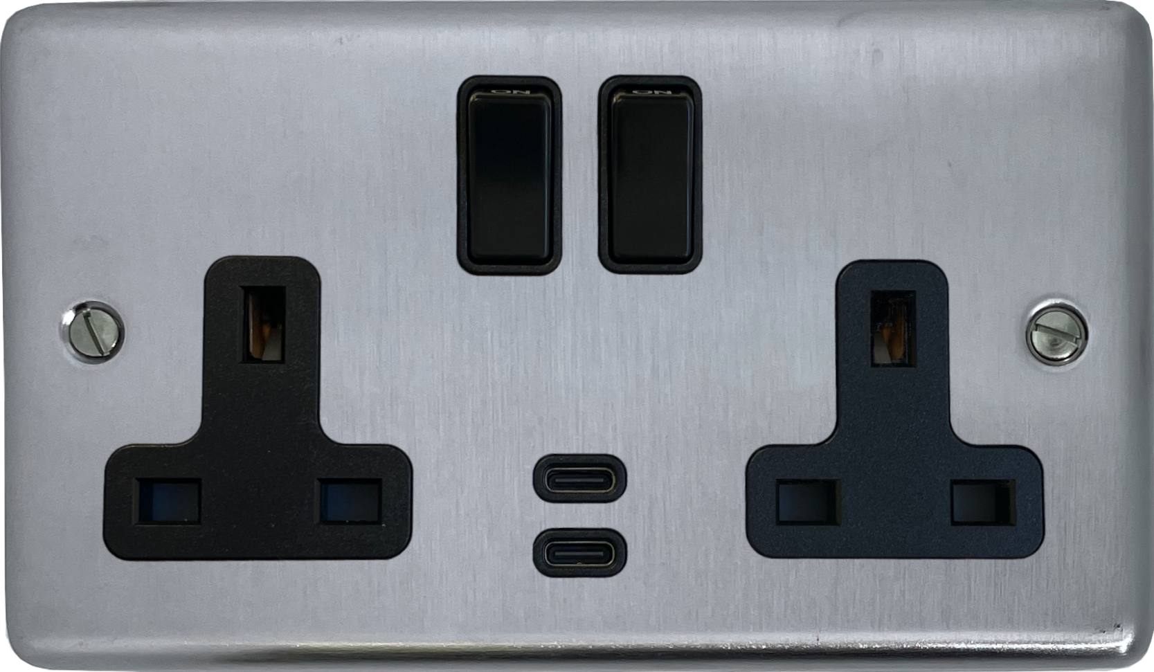 Contour Satin Chrome 2 Gang Socket with USBC