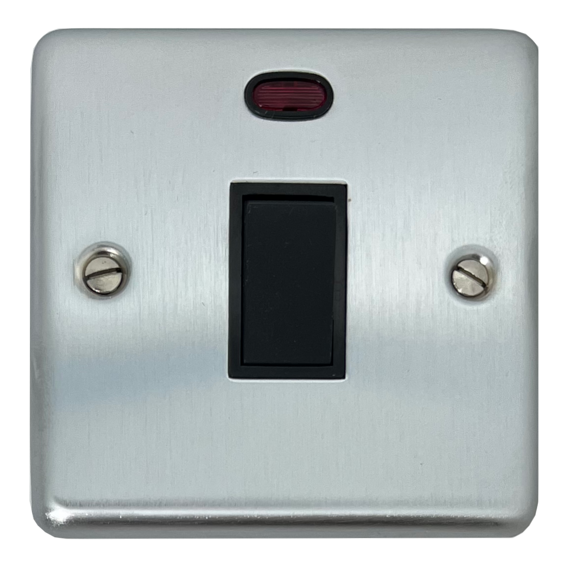Contour Satin Chrome 20A DP Switch with Neon (Black Switch) - G+H CSC26B