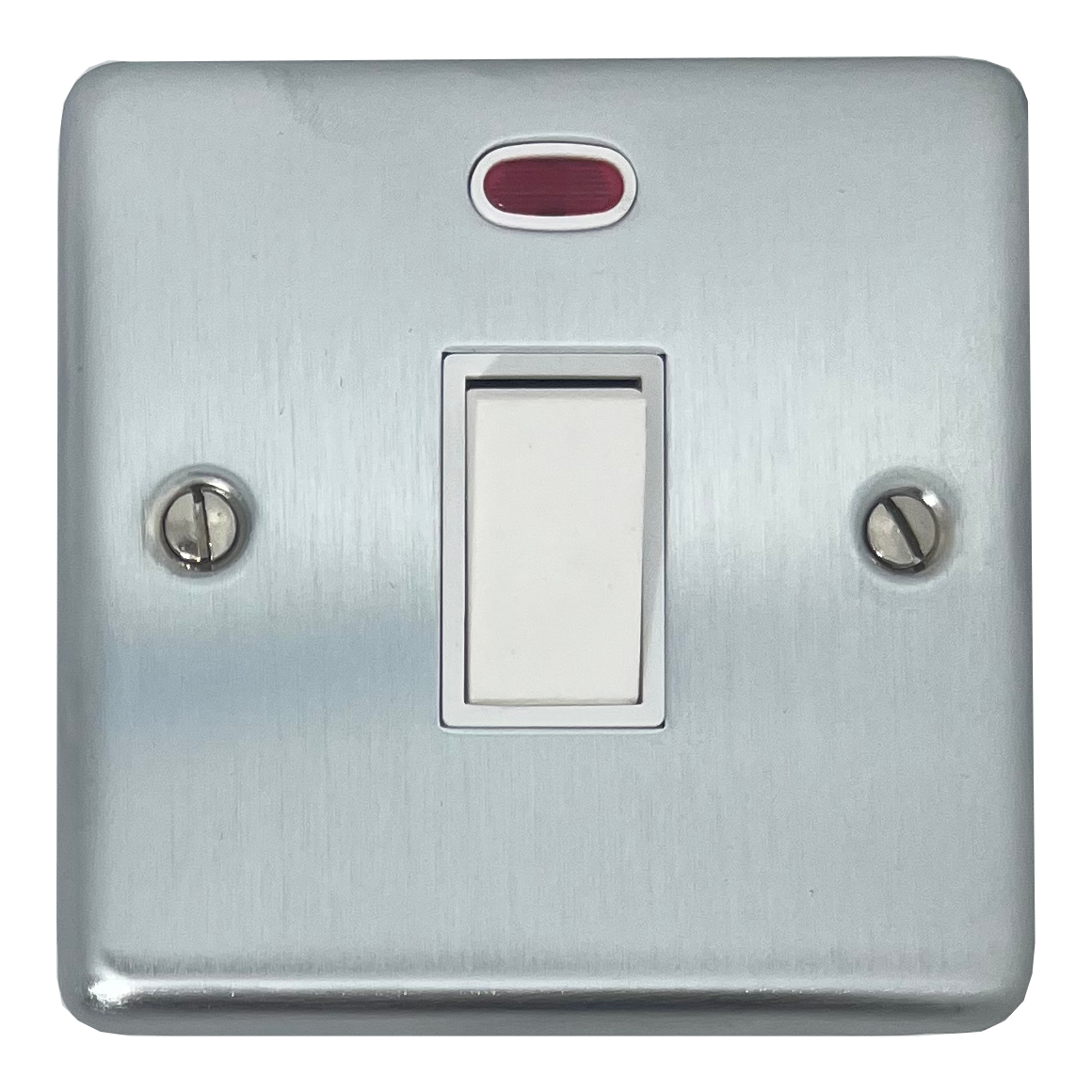 Contour Satin Chrome 20A DP Switch with Neon (White Switch) - G+H CSC26W