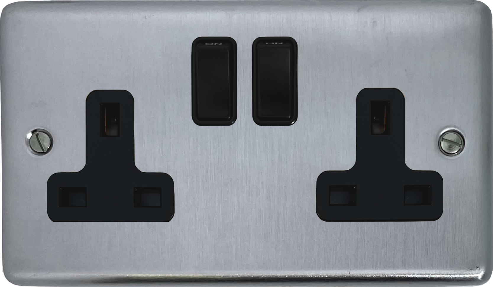 Contour Satin Chrome Double Socket (Black Switch) - G+H CSC10B