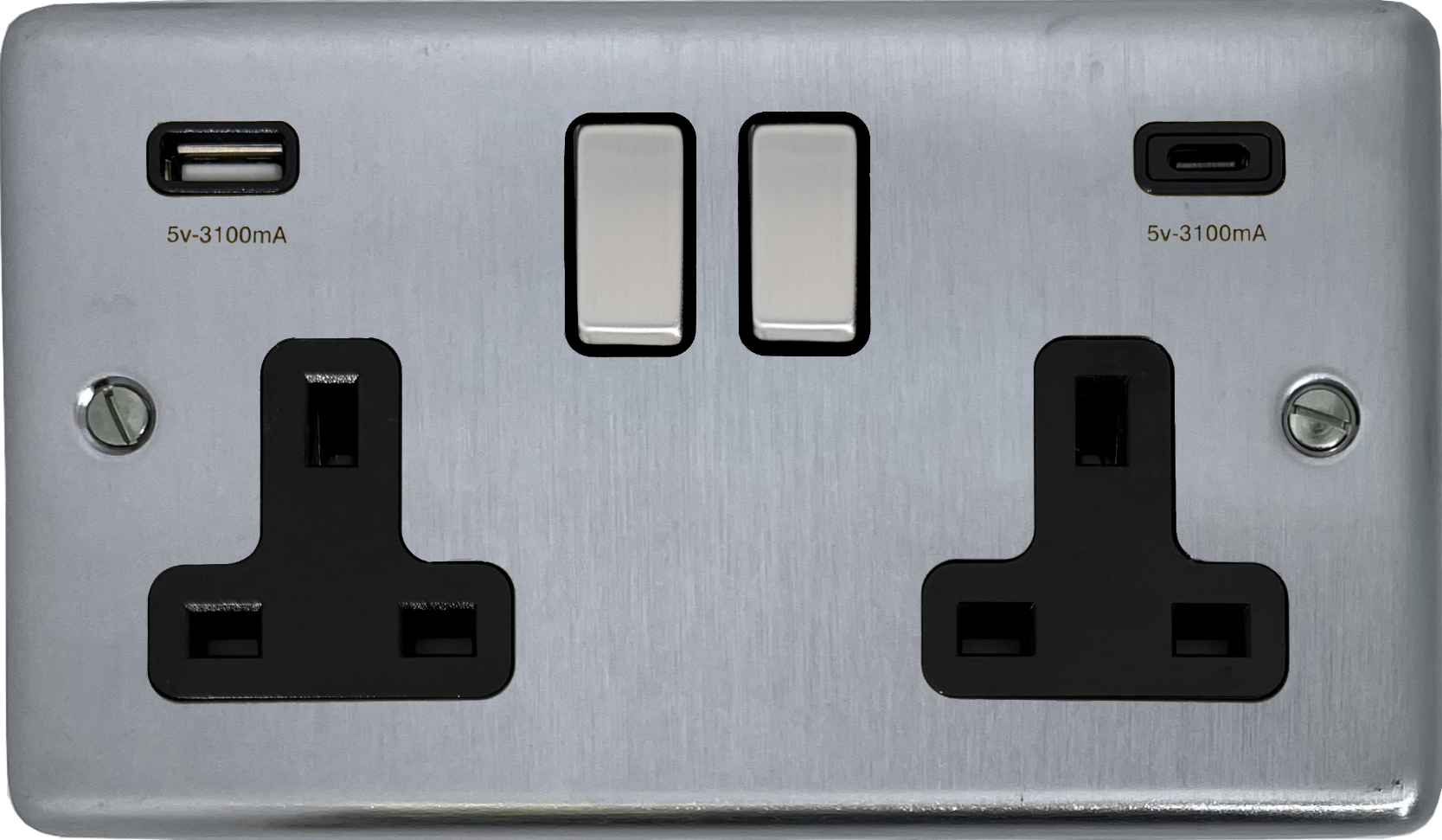 Contour Satin Chrome Double Socket with USB (USB-A and USB-C/Black Insert/Matching Switch) - G+H CSC3911