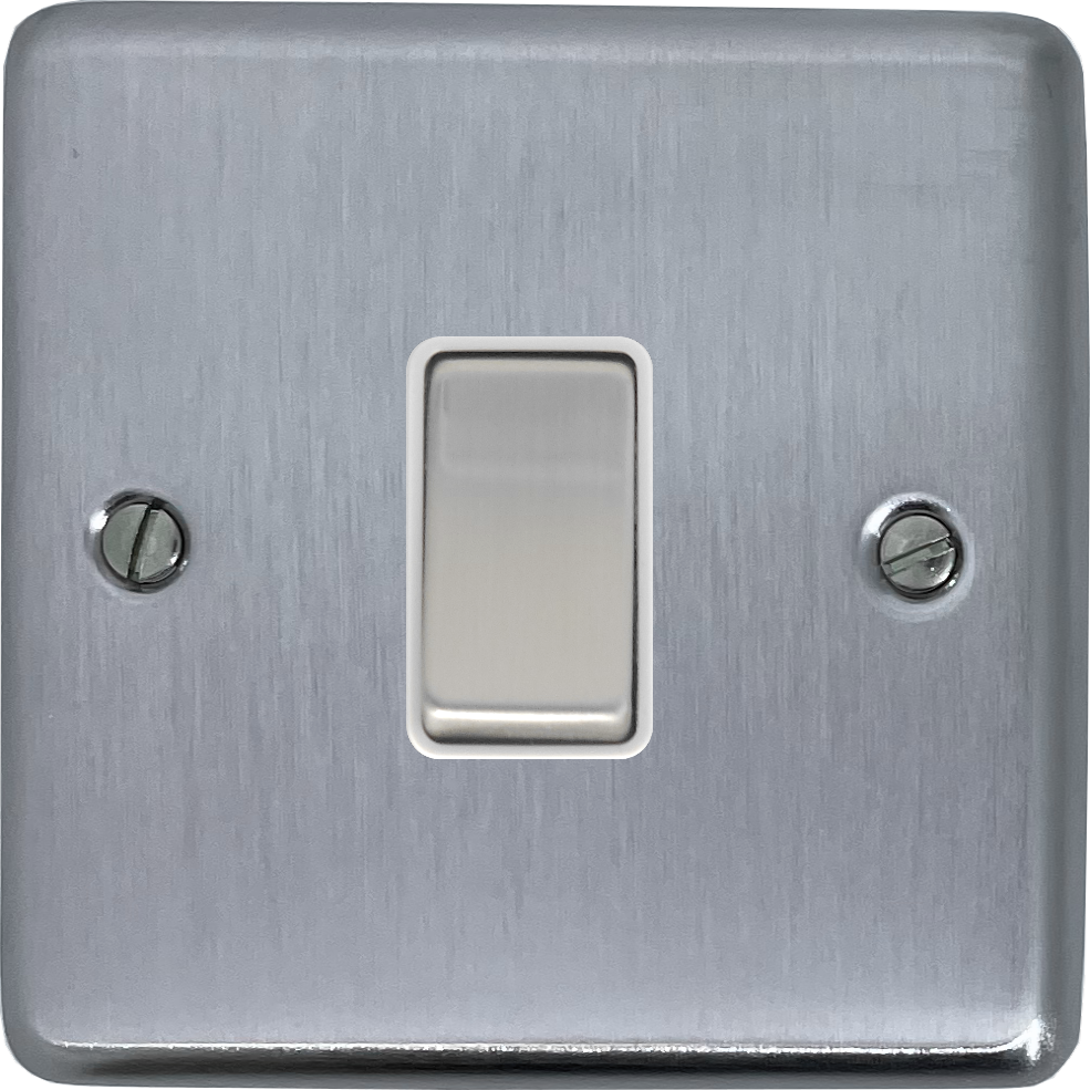 Contour Satin Chrome Light Switch (1 Gang/White Insert/Matching Switch) - G+H CSC201