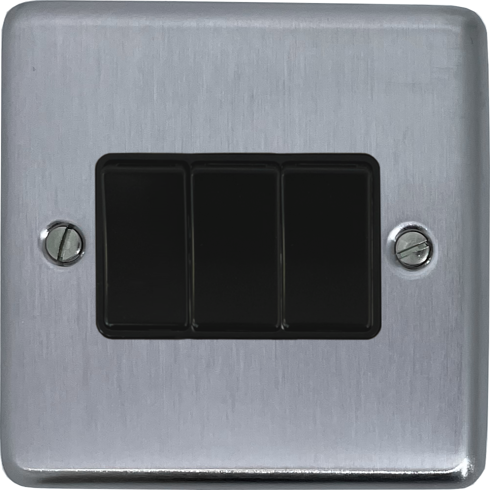 Contour Satin Chrome Light Switch (3 Gang/Black Switch) - G+H CSC3B