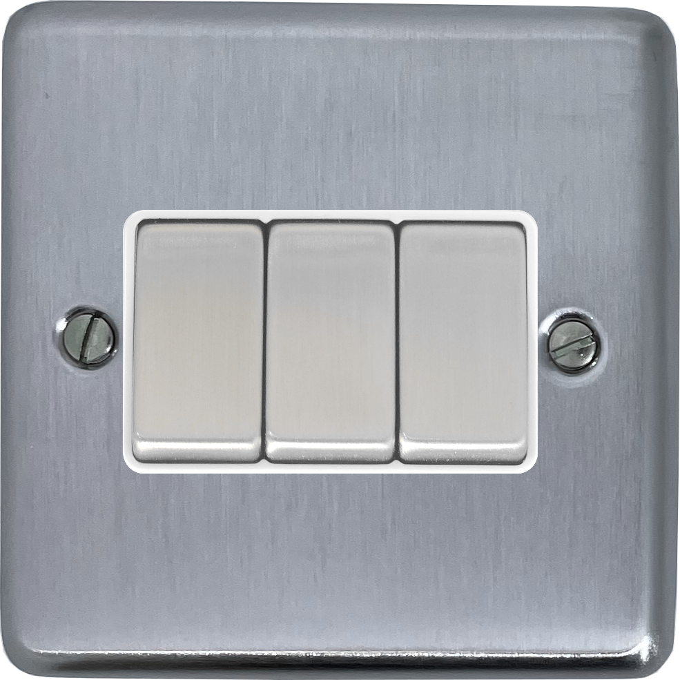 Contour Satin Chrome Light Switch (3 Gang/White Insert/Matching Switch) - G+H CSC203