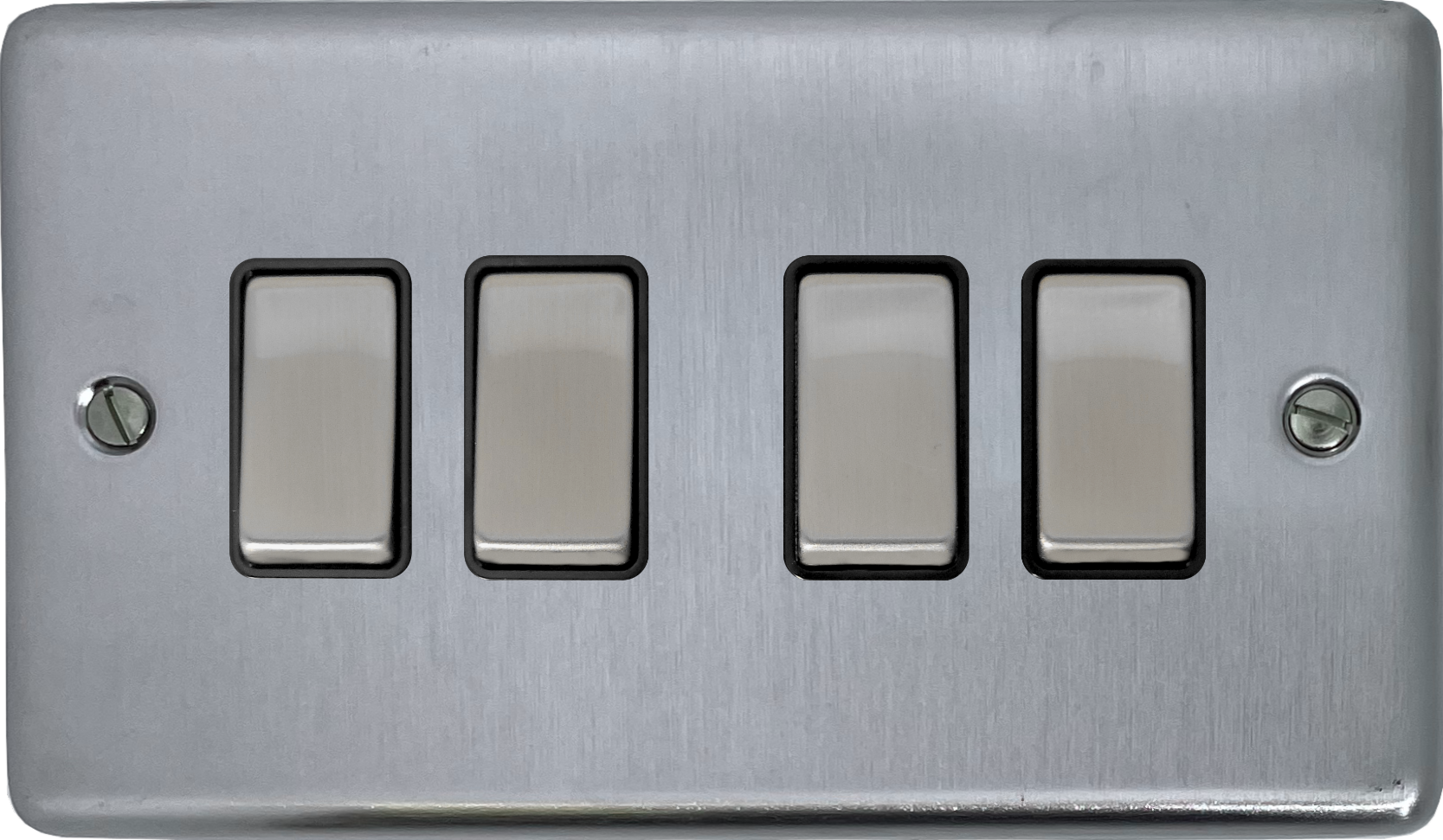 Contour Satin Chrome Light Switch (4 Gang/Black Insert/Matching Switch) - G+H CSC304