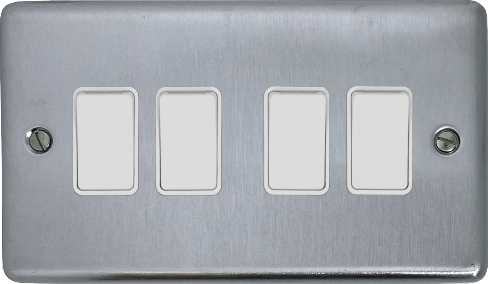 Contour Satin Chrome Light Switch (4 Gang/White Switch) - G+H CSC4W