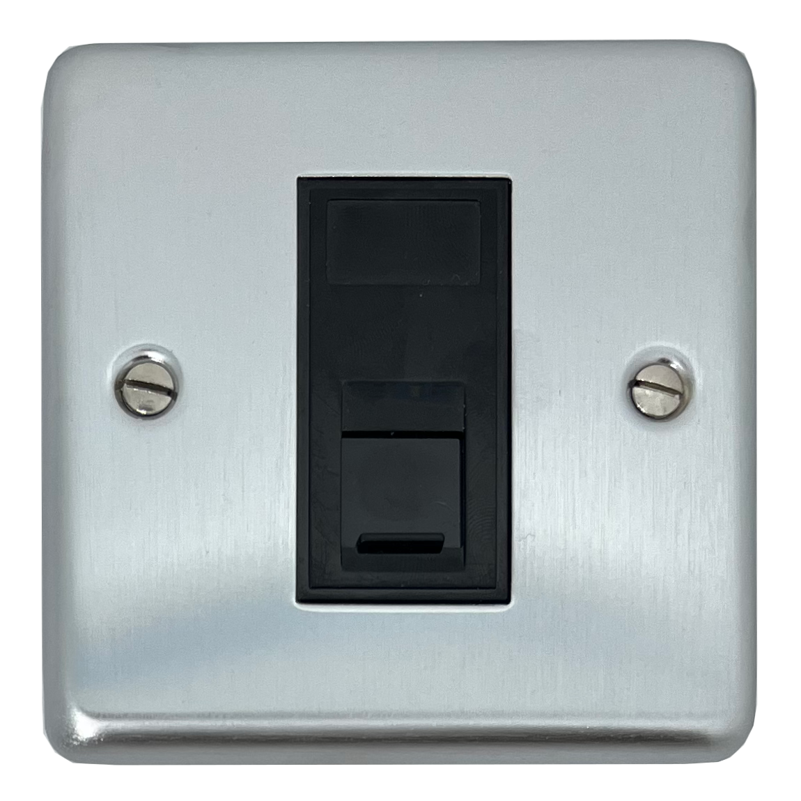 Contour Satin Chrome RJ45 Socket (1 Gang/Black Insert) - G+H CSC61B
