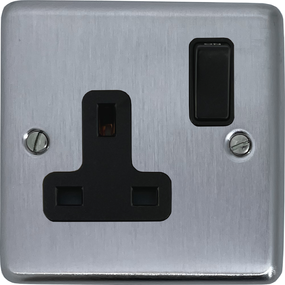 Contour Satin Chrome Single Socket (Black Switch) - G+H CSC9B
