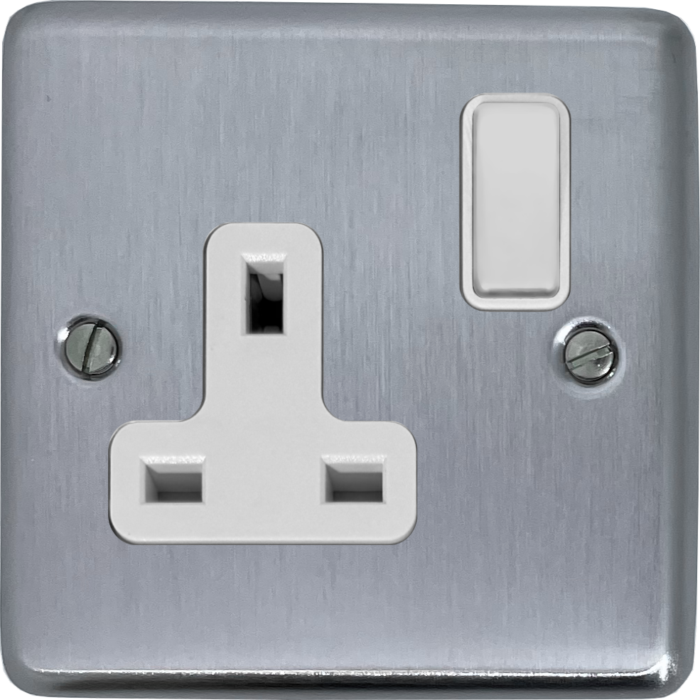 Contour Satin Chrome Single Socket (White Switch) - G+H CSC9W