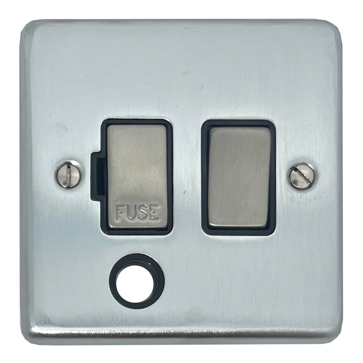 Contour Satin Chrome Switched Fused Spur with Flex Outlet (Black Insert/Matching Switch) - G+H CSC356