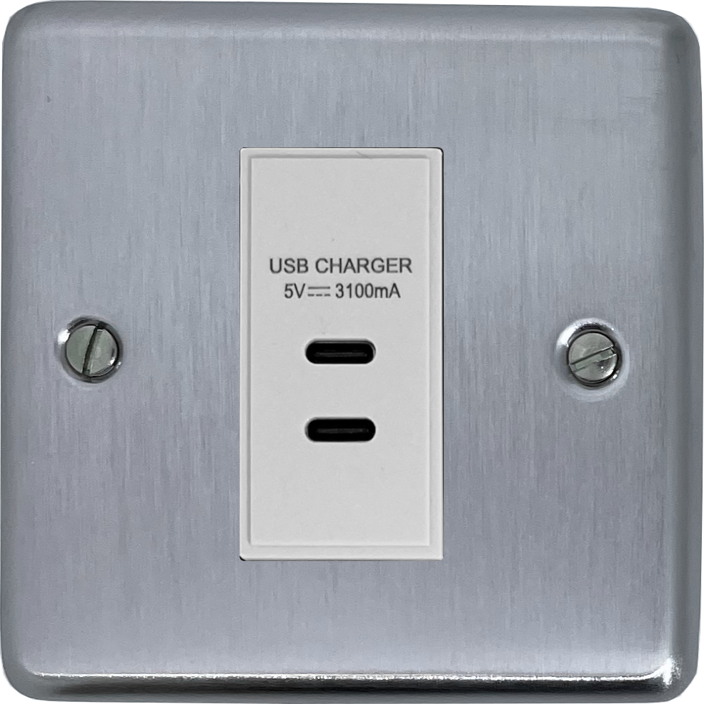 Contour Satin Chrome USB Charger (2x USB-C) (1 Gang/White Insert) - G+H CSC42W
