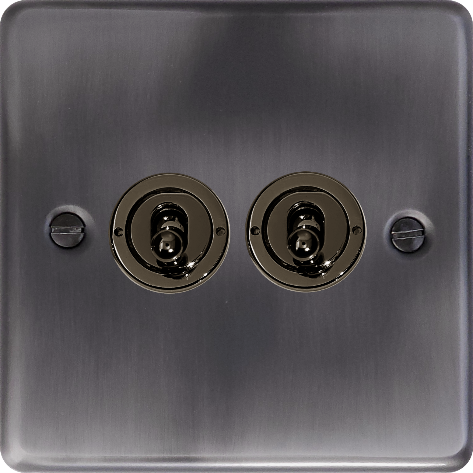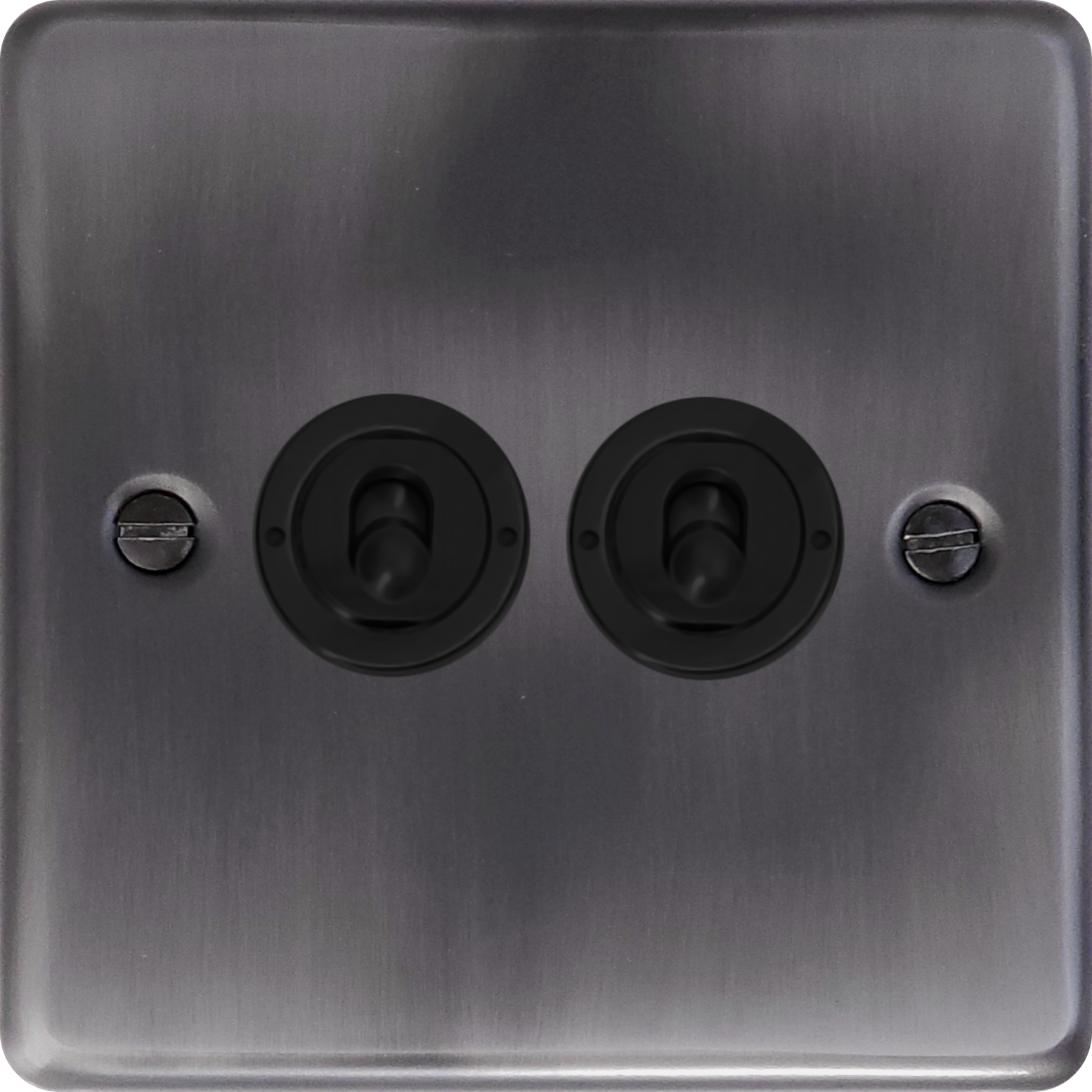 Contour Slate Effect Toggle Switch (2 Gang/Black Nickel Toggle) - G+H CSL382-BK