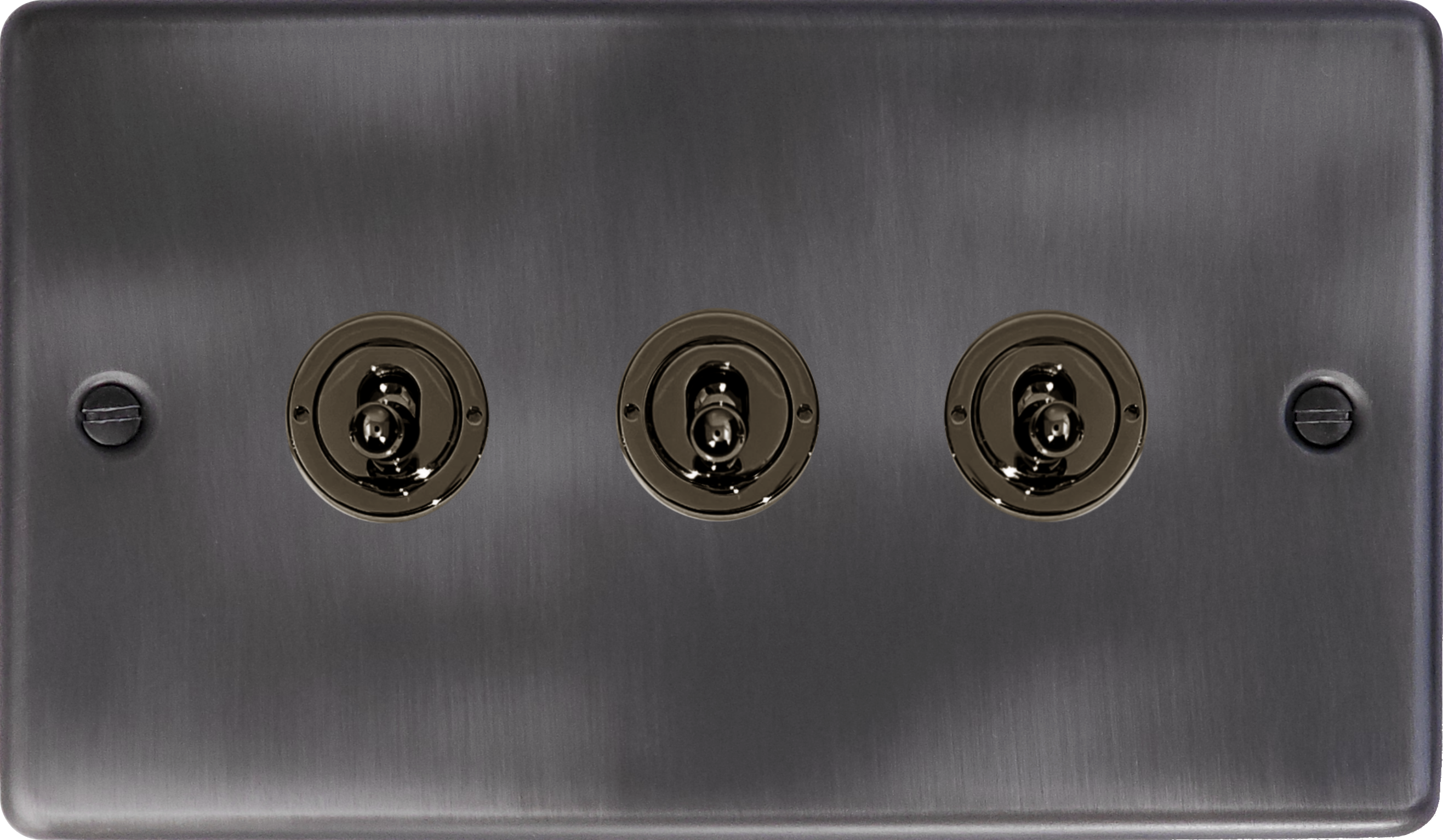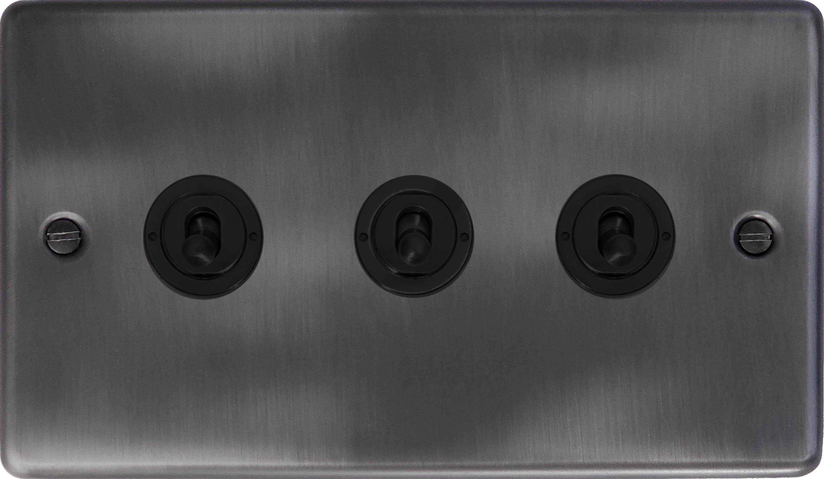 Contour Slate Effect Toggle Switch (3 Gang/Black Nickel Toggle) - G+H CSL383-BK