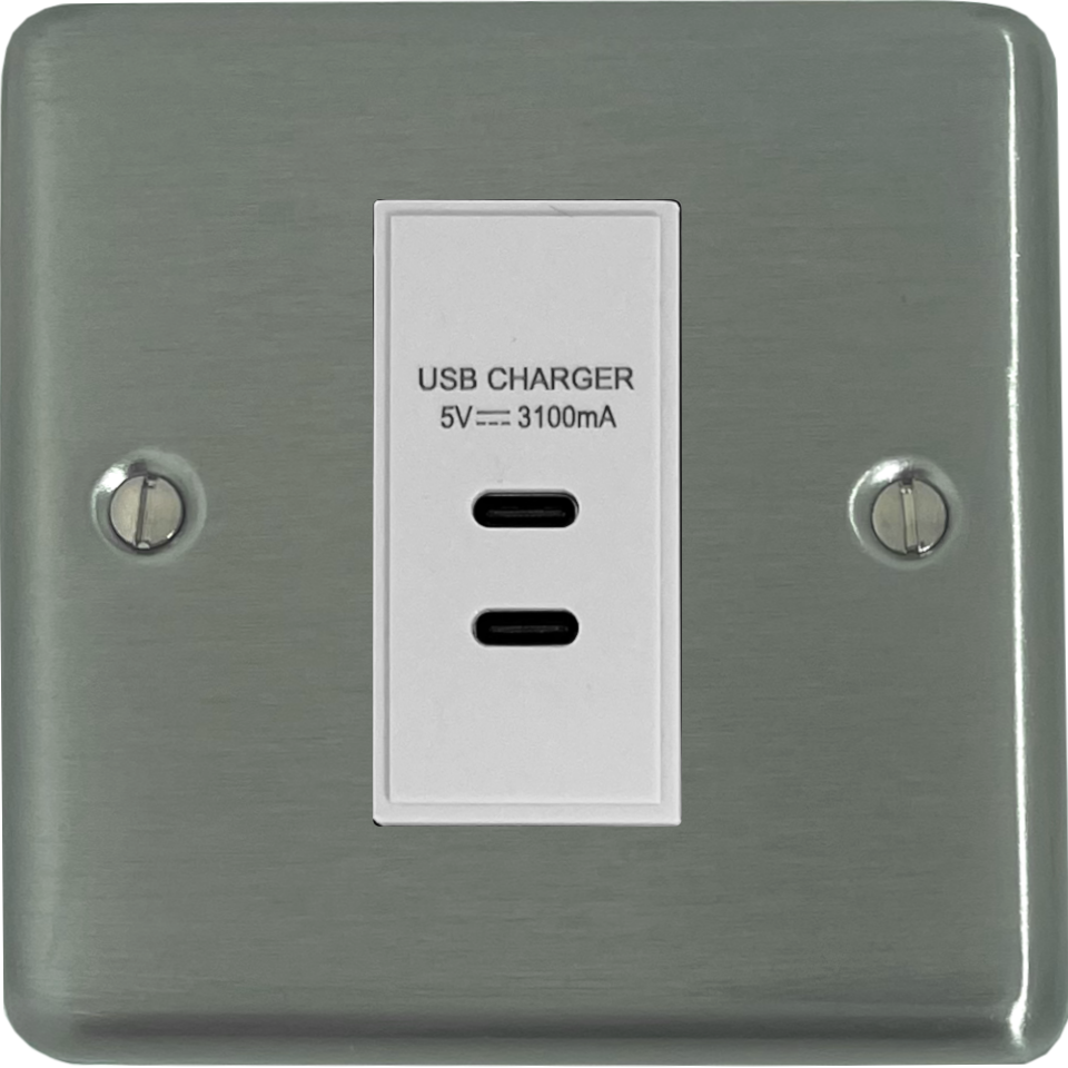 Contour Stainless Steel USB Charger (2x USB-C) (1 Gang/White Insert) - G+H CSS42W