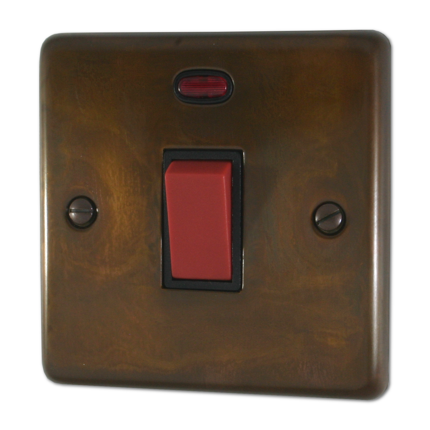 Contour Tarnished Copper 45A DP Switch with Neon (Black Insert/Red Switch) - G+H CTC46B