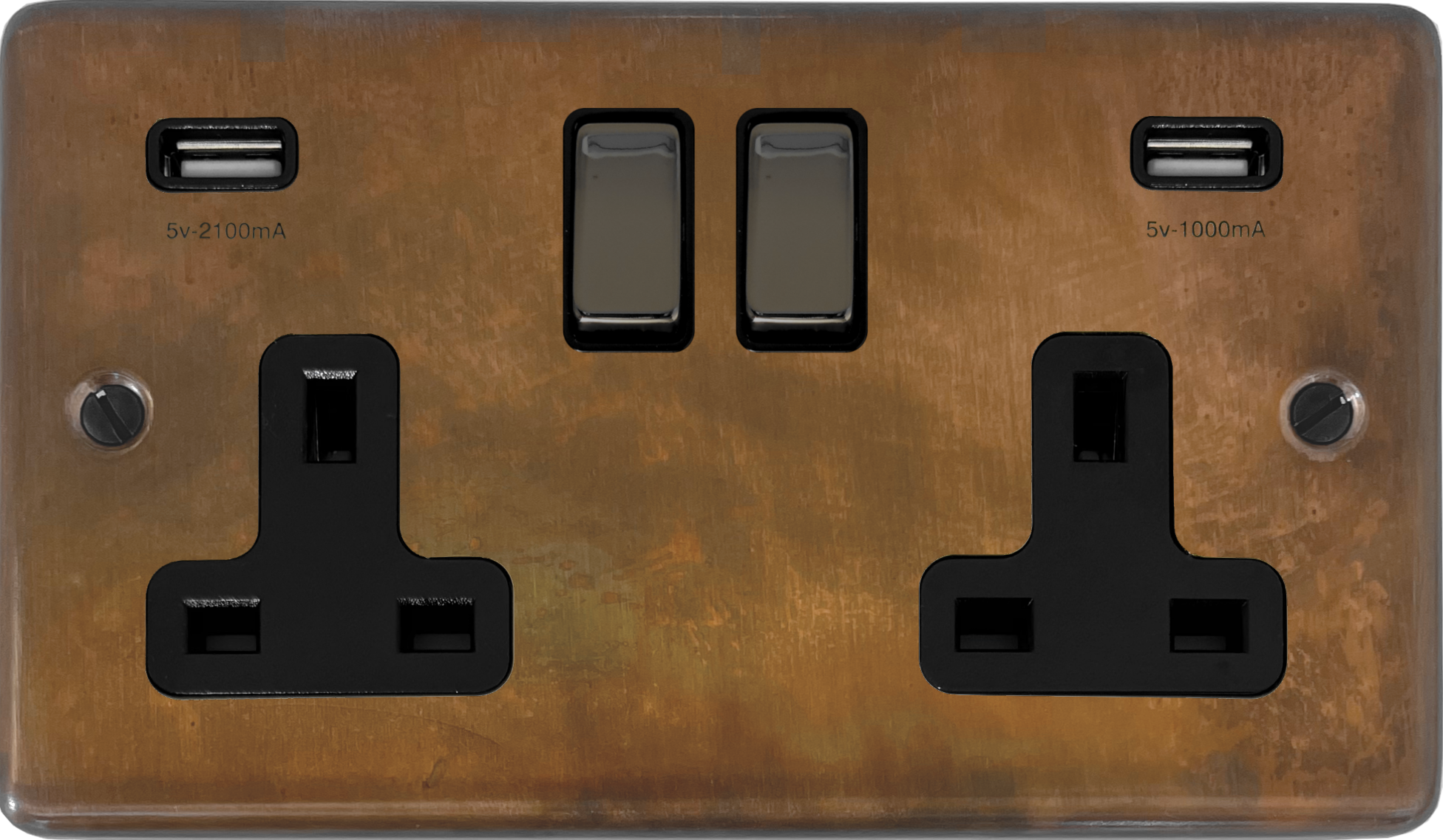 Contour Tarnished Copper Double Socket with USB (Black Nickel Switch) - G+H CTC3910