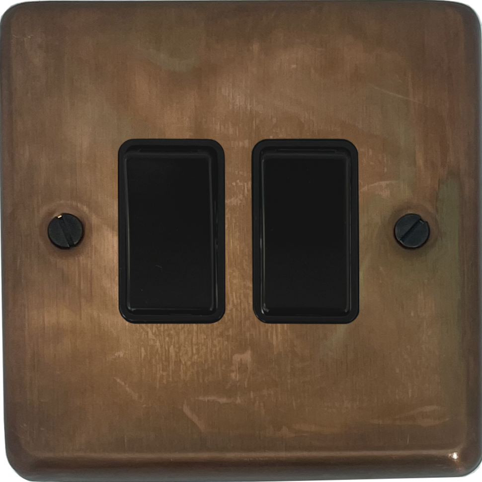 Contour Tarnished Copper Light Switch (2 Gang/Black Switch) - G+H CTC2B