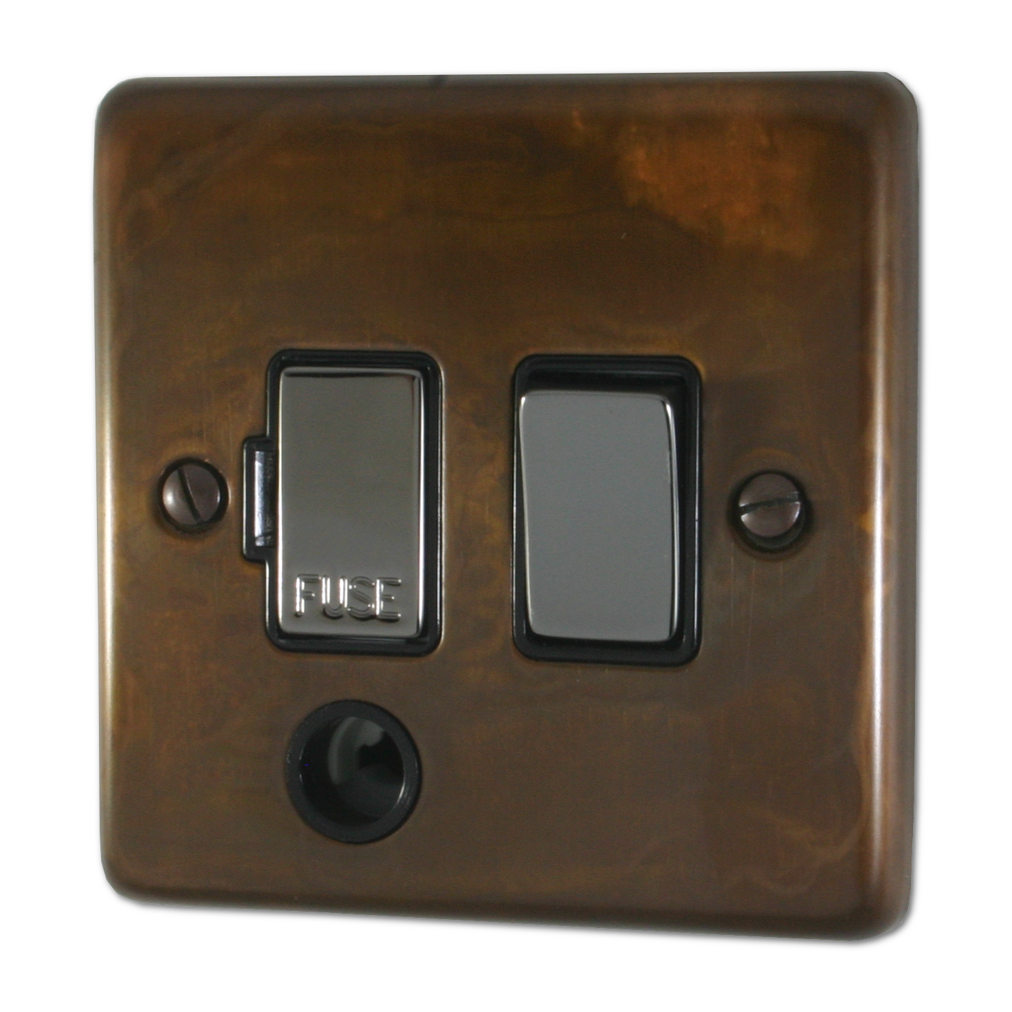 Contour Tarnished Copper Switched Fused Spur with Flex Outlet (Black Nickel Switch) - G+H CTC356