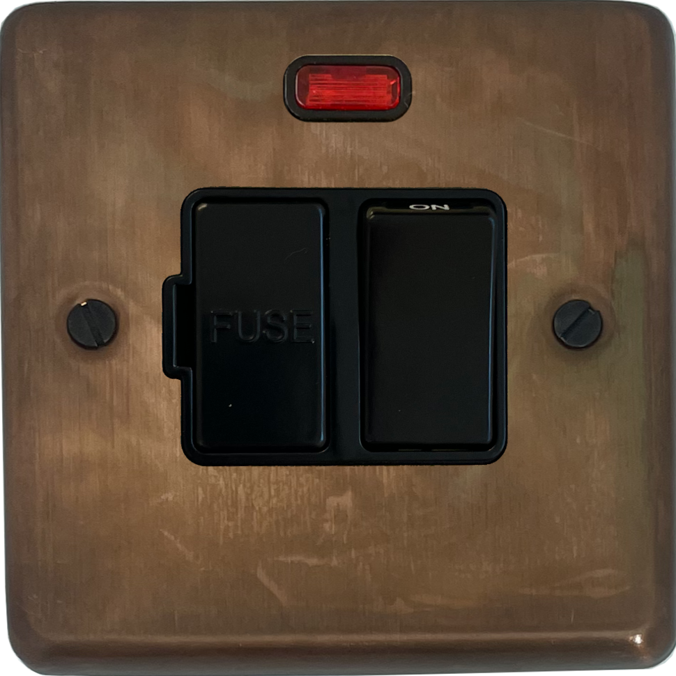 Contour Tarnished Copper Switched Fused Spur with Neon (Black Switch) - G+H CTC27B