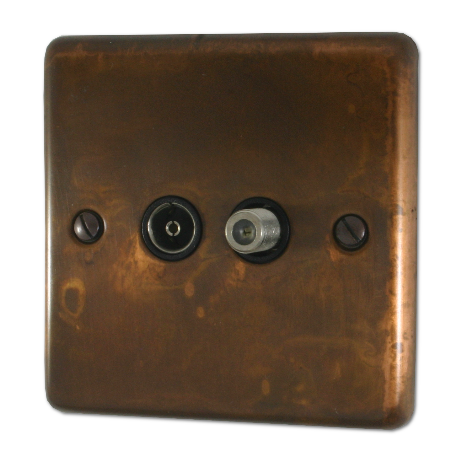 Contour Tarnished Copper TV/Satellite Socket (Black Insert) - G+H CTC38B