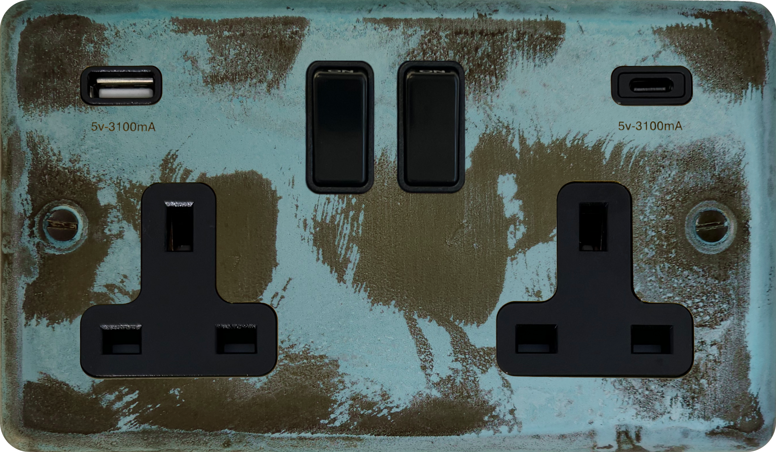 Contour Verdigris Double Socket with USB (USB-A and USB-C/Black Switches) - G+H CV911B