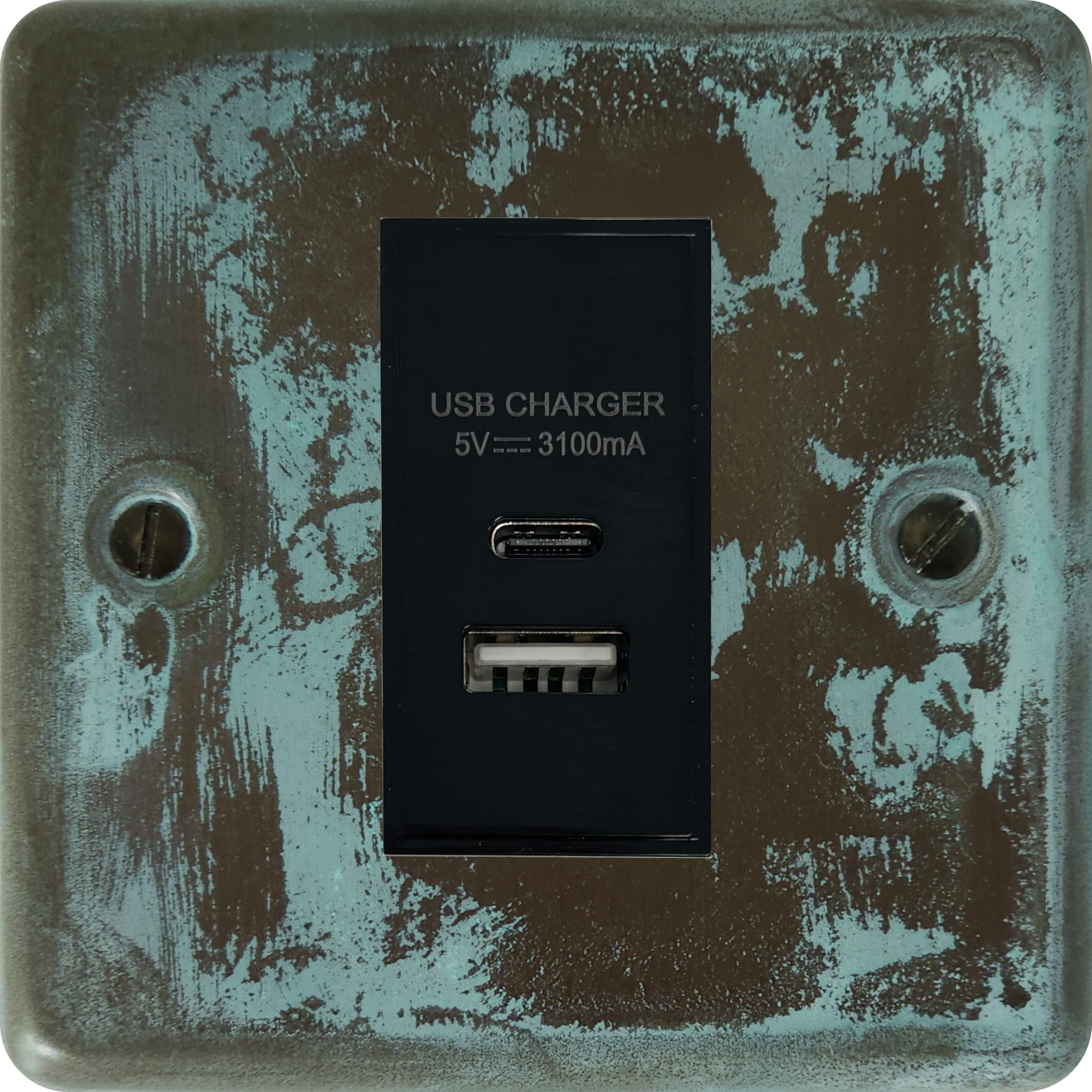 Contour Verdigris USB Charger (USB-A and USB-C) (1 Gang/Black Insert) - G+H CV41B