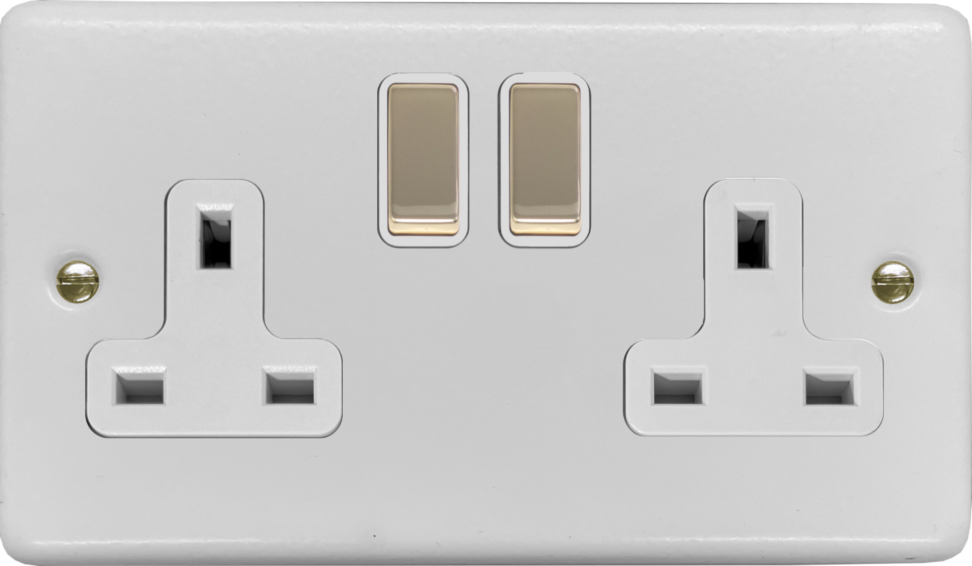 Contour White Double Socket (Polished Brass Switches) - G+H _CW410