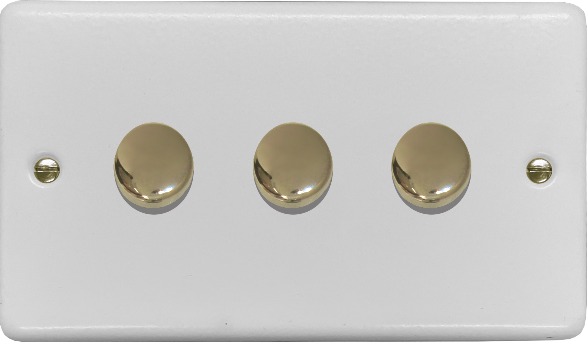 Contour White LED Dimmer (3 Gang/Brass Caps)