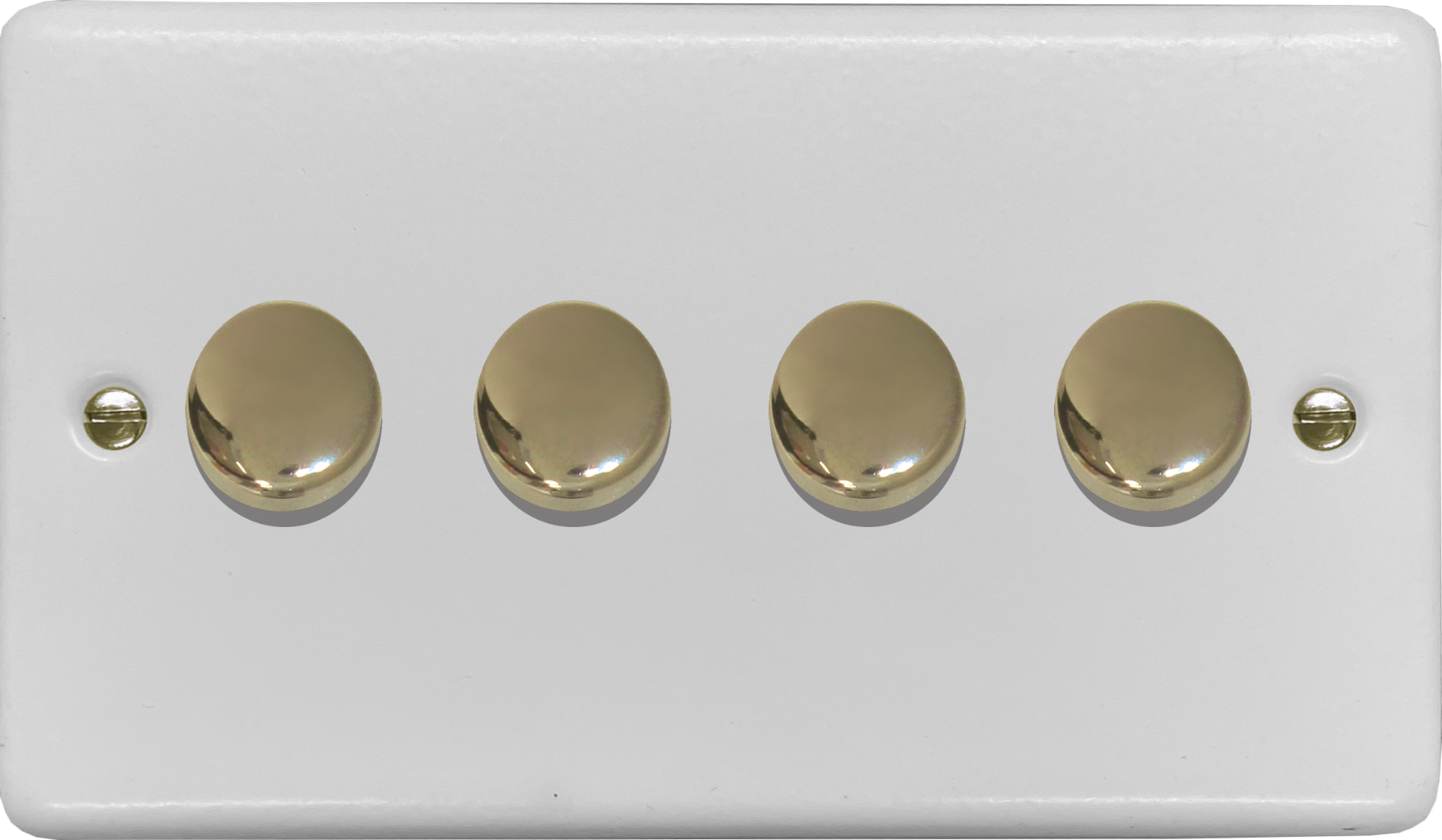 Contour White LED Dimmer (4 Gang/Brass Caps)