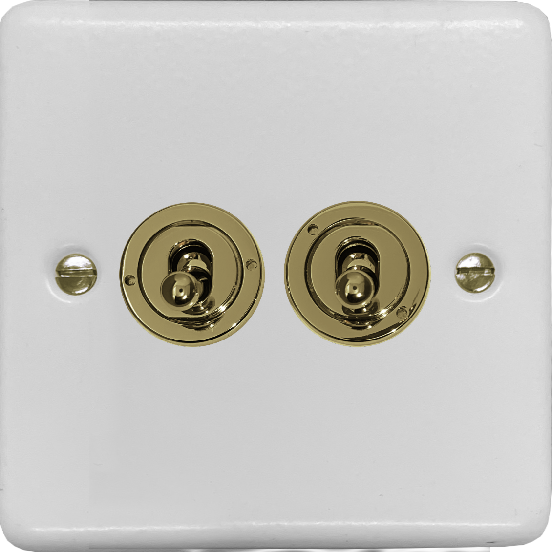Contour White Toggle Switch (2 Gang/Polished Brass Switches) - G+H CW382-PB