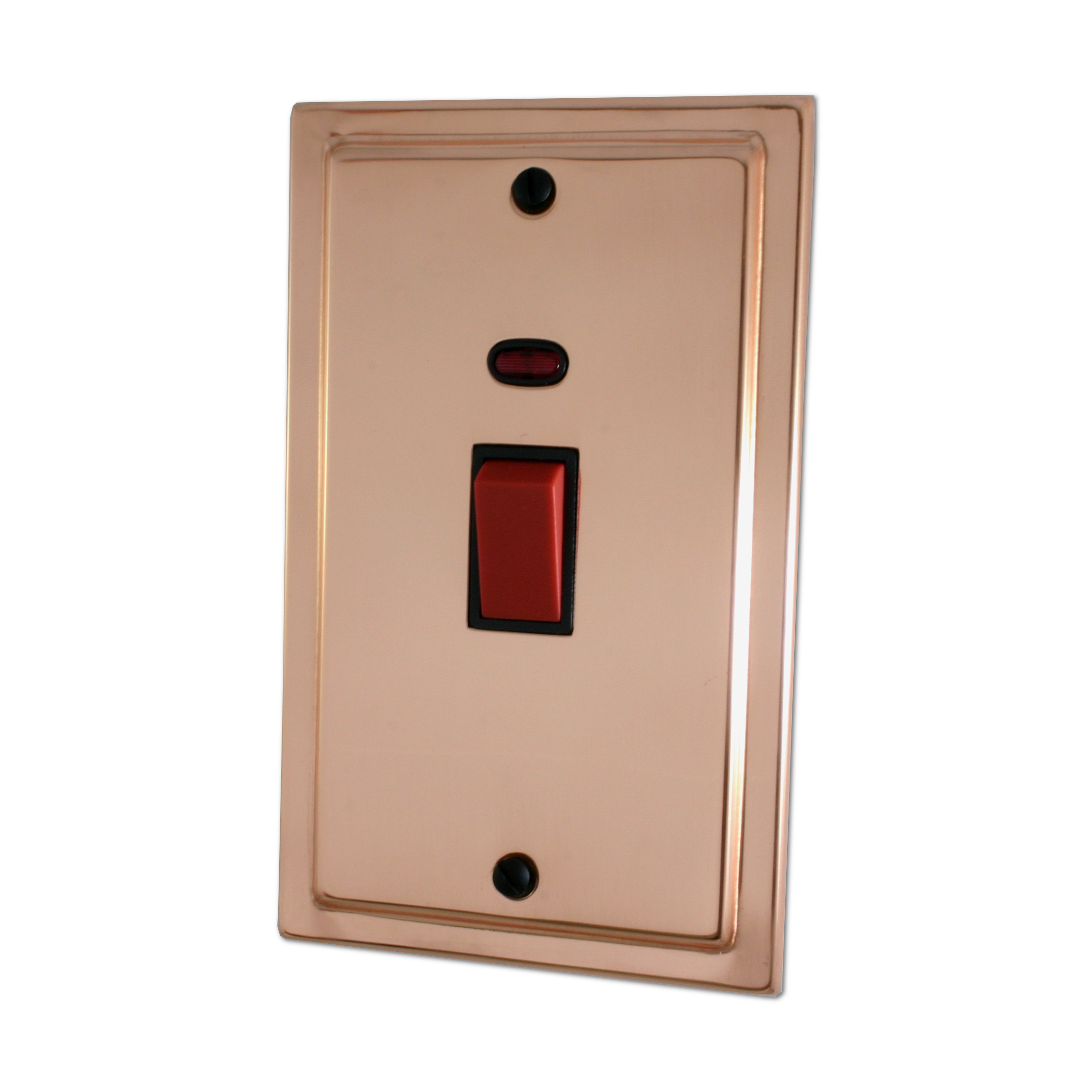 Copper 45A DP Switch with Neon (Black Insert/Red Switch/Vertical Plate) - G+H TBC28B