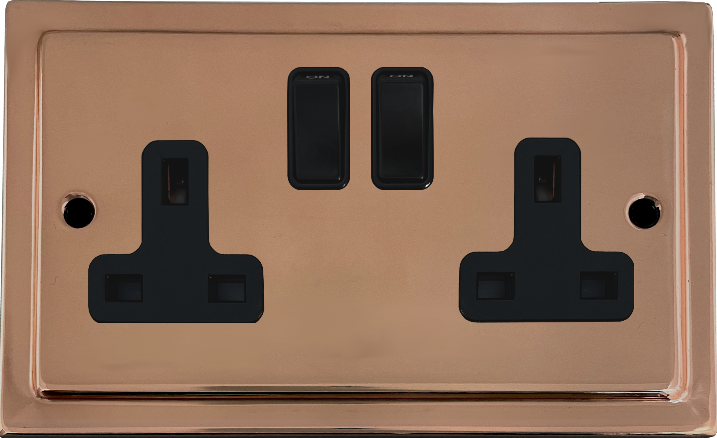 Copper Double Socket (Black Switch) - G+H TBC10B