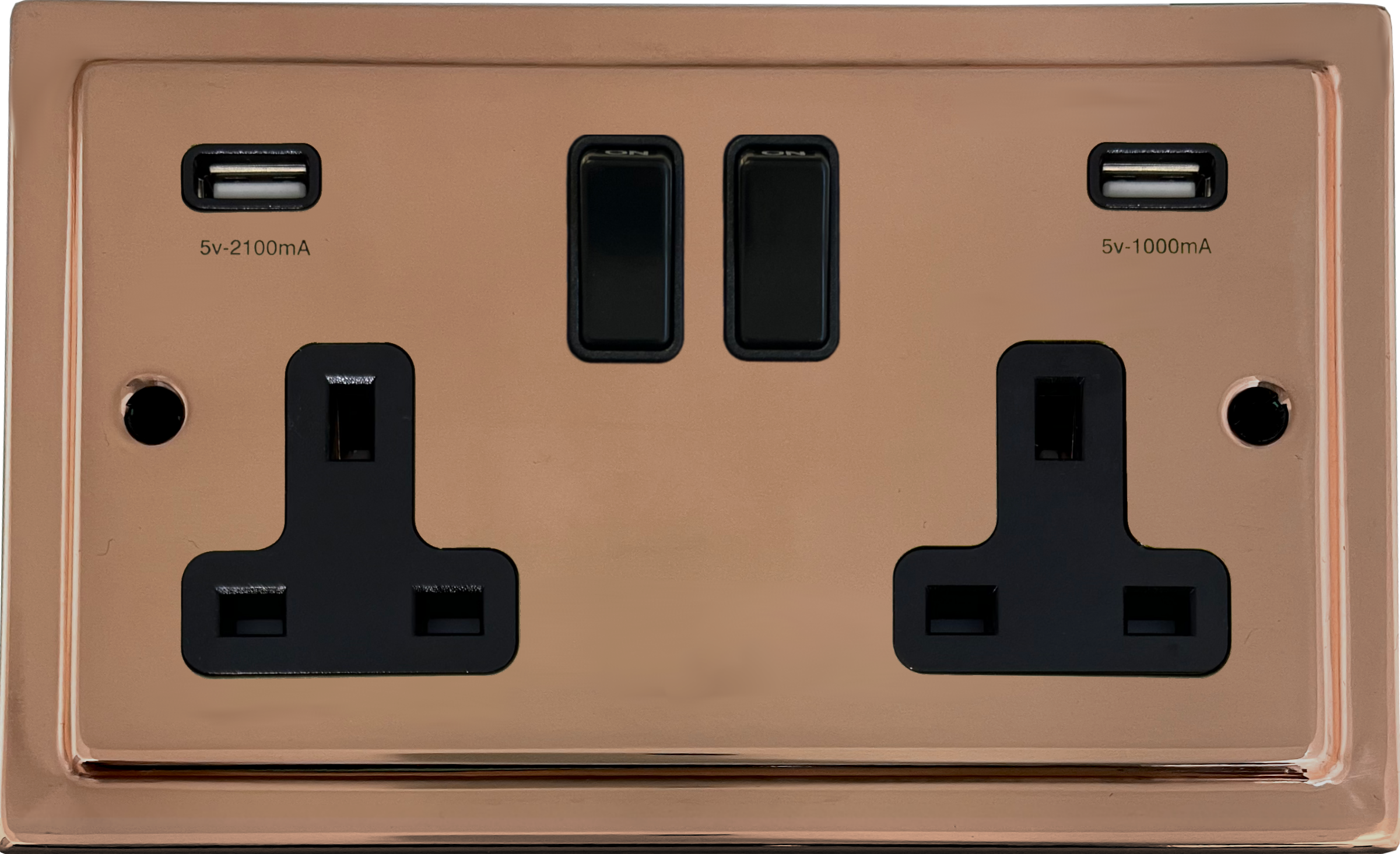 Copper Double Socket with USB (Black Switch) - G+H TBC910B