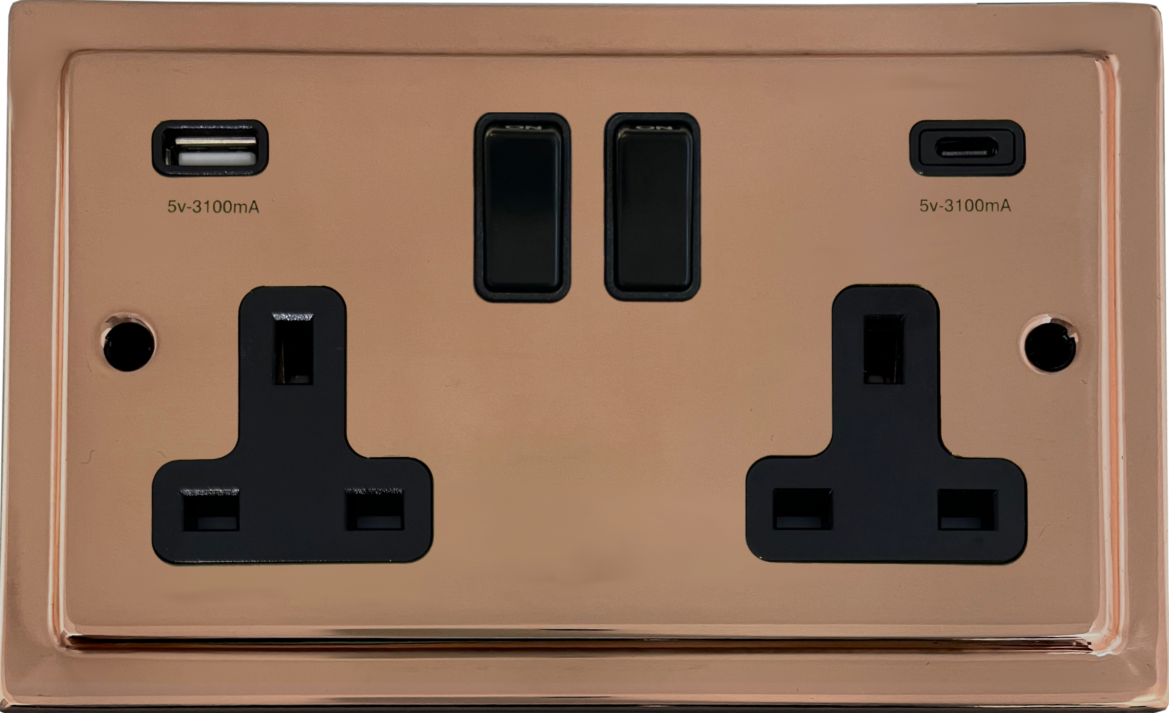 Copper Double Socket with USB (USB-A and USB-C/Black Switches) - G+H TBC911B