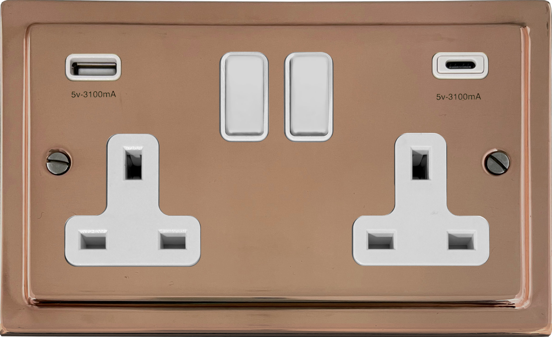 Copper Double Socket with USB (USB-A and USB-C/White Switches) - G+H TBC911W