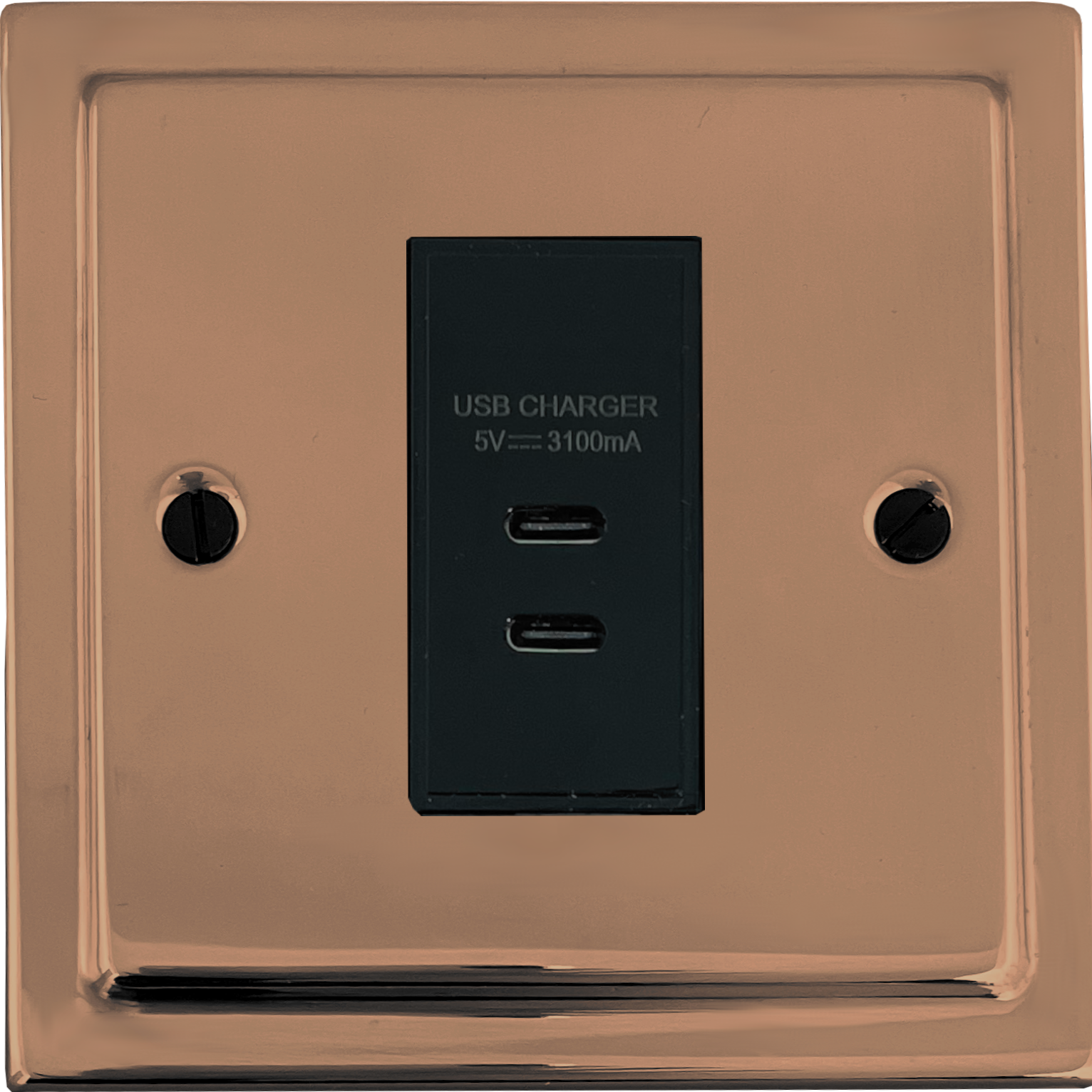 Copper USB Charger (2x USB-C) (1 Gang/Black Insert) - G+H TBC42B