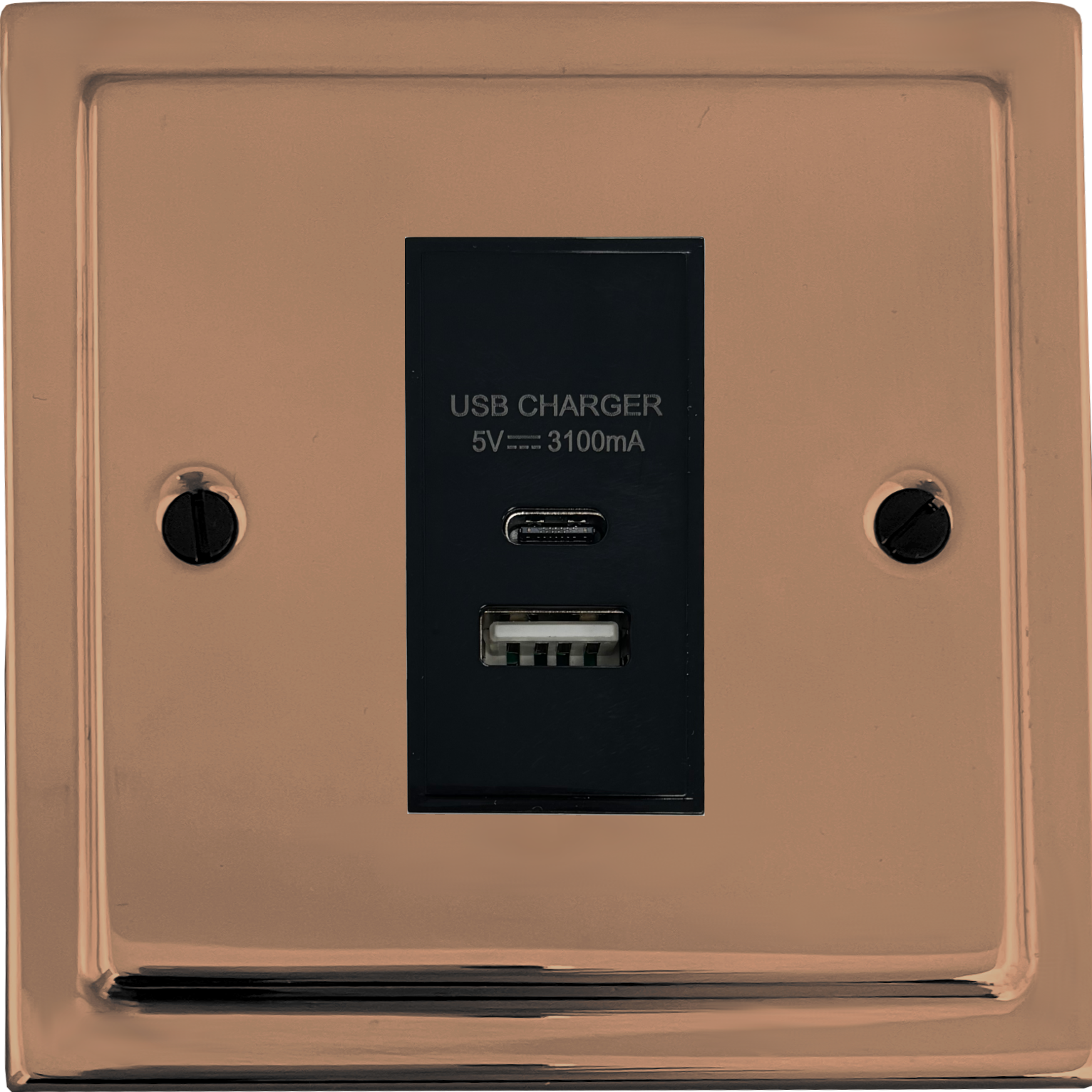 Copper USB Charger (USB-A and USB-C) (1 Gang/Black Insert) - G+H TBC41B