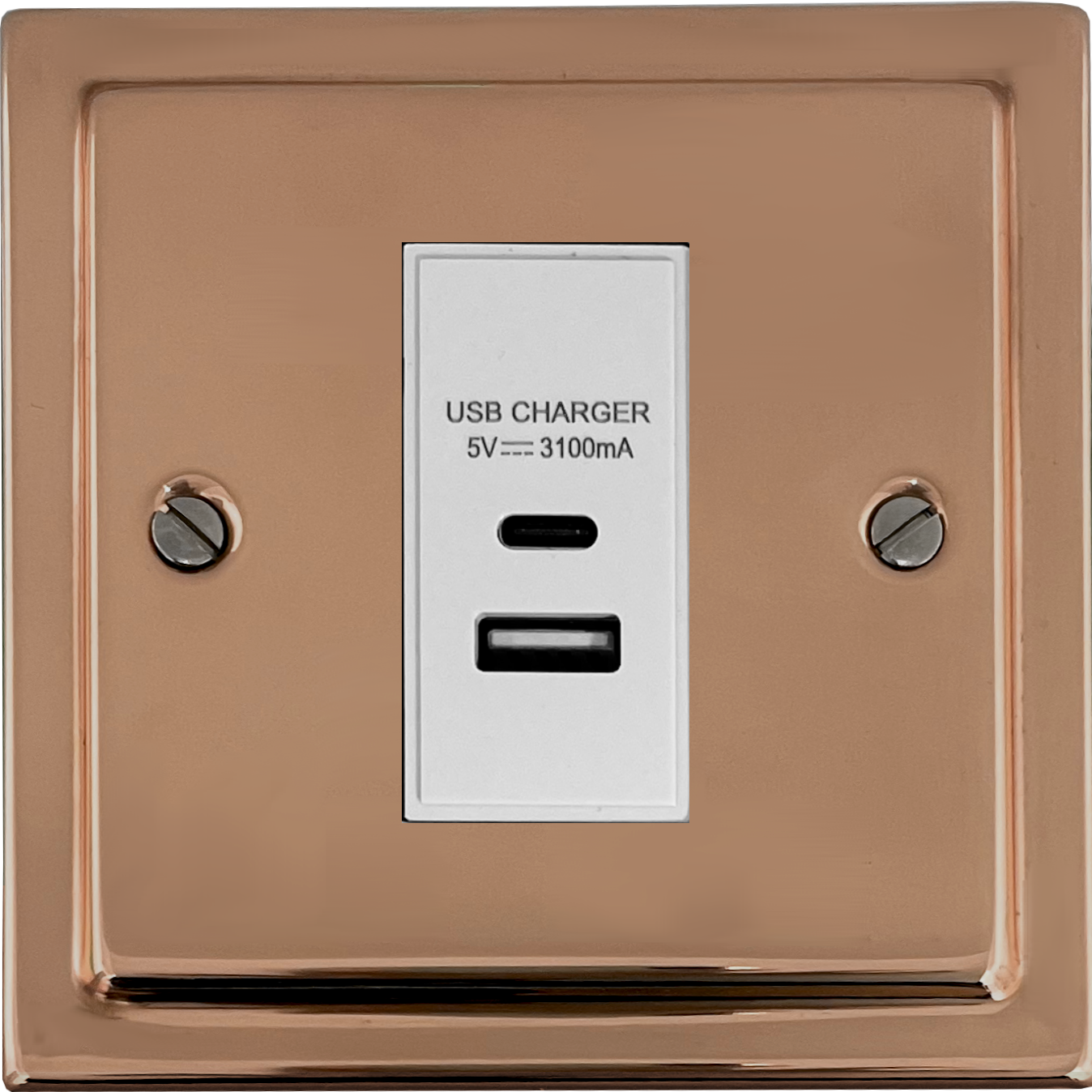 Copper USB Charger (USB-A and USB-C) (1 Gang/White Insert) - G+H TBC41W